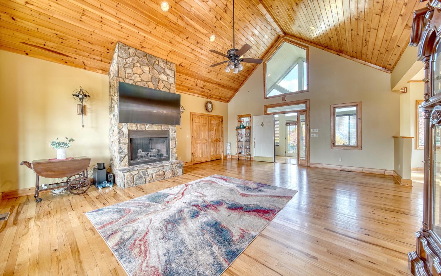 This majestic mountain 3 Br/ 3 Ba residence with a 2 car garage is surrounded by a beautifully manicured landscape that sets the stage for your dream home. In this real estate offering, you'll find a meticulously kept circular driveway, providingAs you approach, a well-maintained paved circular driveway offers ample parking, and the spacious pet-friendly private yard features garden beds for your green thumb endeavors. Every facet of this Mountain Tops residence has been intricately designed and skillfully crafted to cater to your every requirement. On the main level, you'll find an exquisite master suite with separate his and her private bath suites, a convenient laundry room, and a dedicated office space. Unrivaled year-round long range mountain views await you, from this ridge-line position, you can enjoy three unique and breathtaking mountain panoramas..The home's grand entrance welcomes you into a dramatic great room, where an enclosed solarium adds to the sense of space and tranquility. The Chef's kitchen is thoughtfully designed with granite countertops, stainless steel appliances, and an island with a prep sink, blending modern convenience with rustic charm.Notable features of this property include a 1000-gallon buried propane tank, a whole-house Generac generator, access to city water, and paved roads for easy accessibility. Just a short 5-minute drive will take you to downtown Blue Ridge, making this the perfect location to call home. PROFESSIONAL PHOTOS COMING SOON