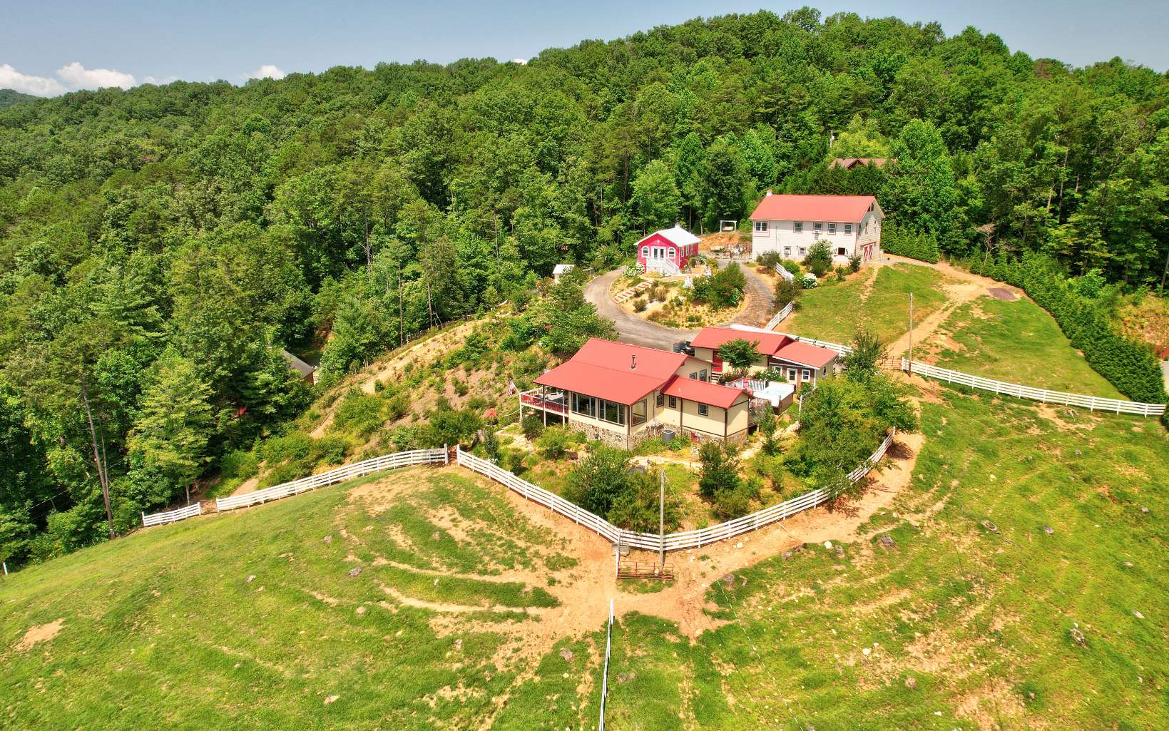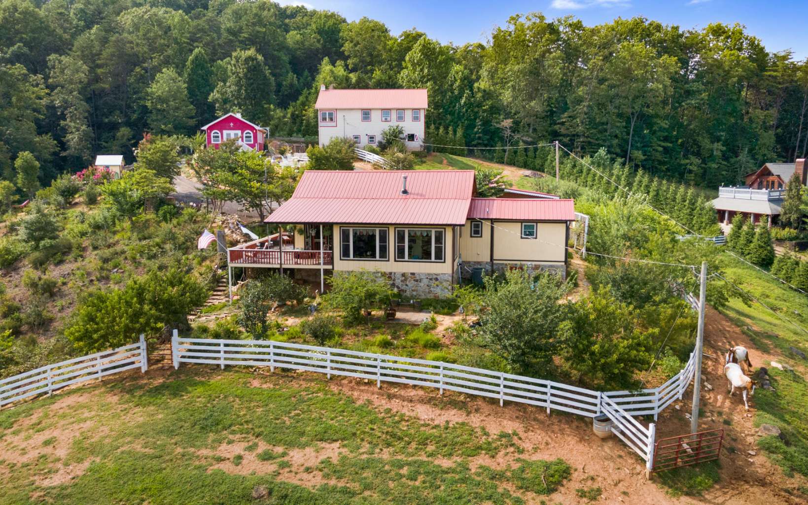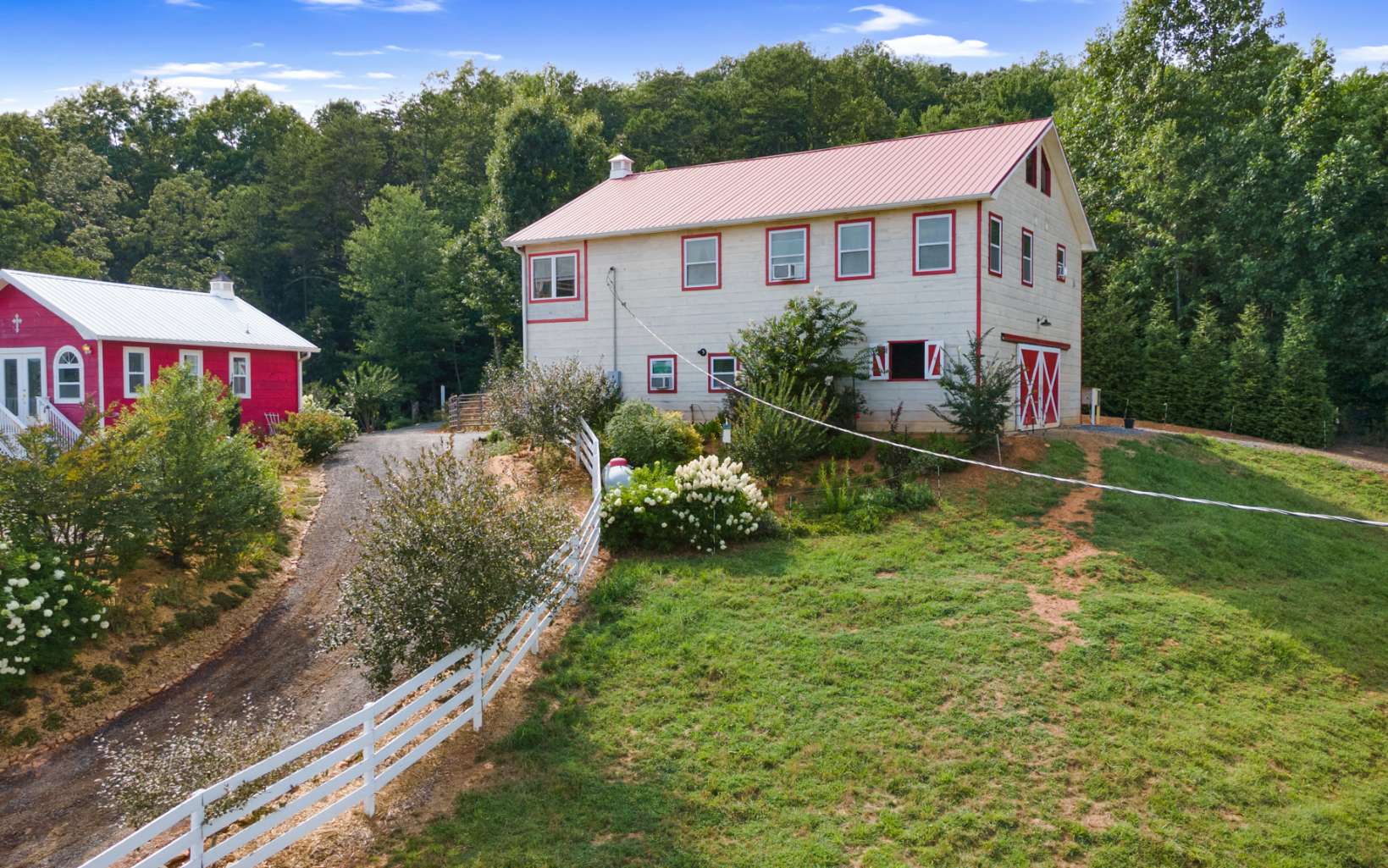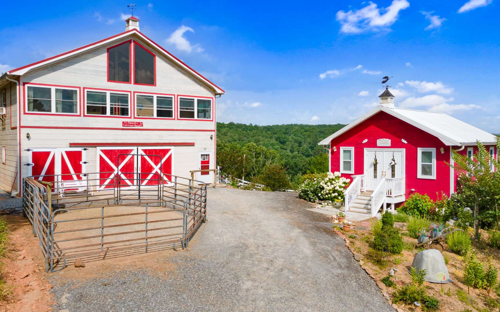 Nestled atop a picturesque hill, you will be amazed by 2 adjoining properties offering year-round mountain vistas adorned with a profusion of flowers, flowering trees, shrubs, and bountiful fruit trees. This exceptional opportunity in the North Georgia Mountains, offers 2 homes, 2 septic systems, 2 wells, a heated barn/event hall, chapel, heated workshop, garage, and swim spa. This property offers a multitude of possibilities, positioning it as an ideal candidate for various ventures such as a wedding venue, winery, and more. Notably, the pastures are lush and fenced, ideal for accommodating horses and other farm animals. Whether you're pursuing a thriving business or a serene escape from city life, Daffodil Hill Farm caters to your preferences.The whimsical landscapes have earned 5-star reviews for their flowers, fruit trees, berries, gardens, and lush green pastures, all with year-round mountain views and seasonal creek views. Plus, you'll enjoy year-round, easy access to this remarkable property.The opportunities are limitless! Whether you aspire to carry on the legacy of Daffodil Hill Farm and Carriage, embark on a new Agritourism venture, or simply savor the tranquility of this breathtaking landscape, Daffodil Hill Farm is the canvas upon which your dreams can be realized.