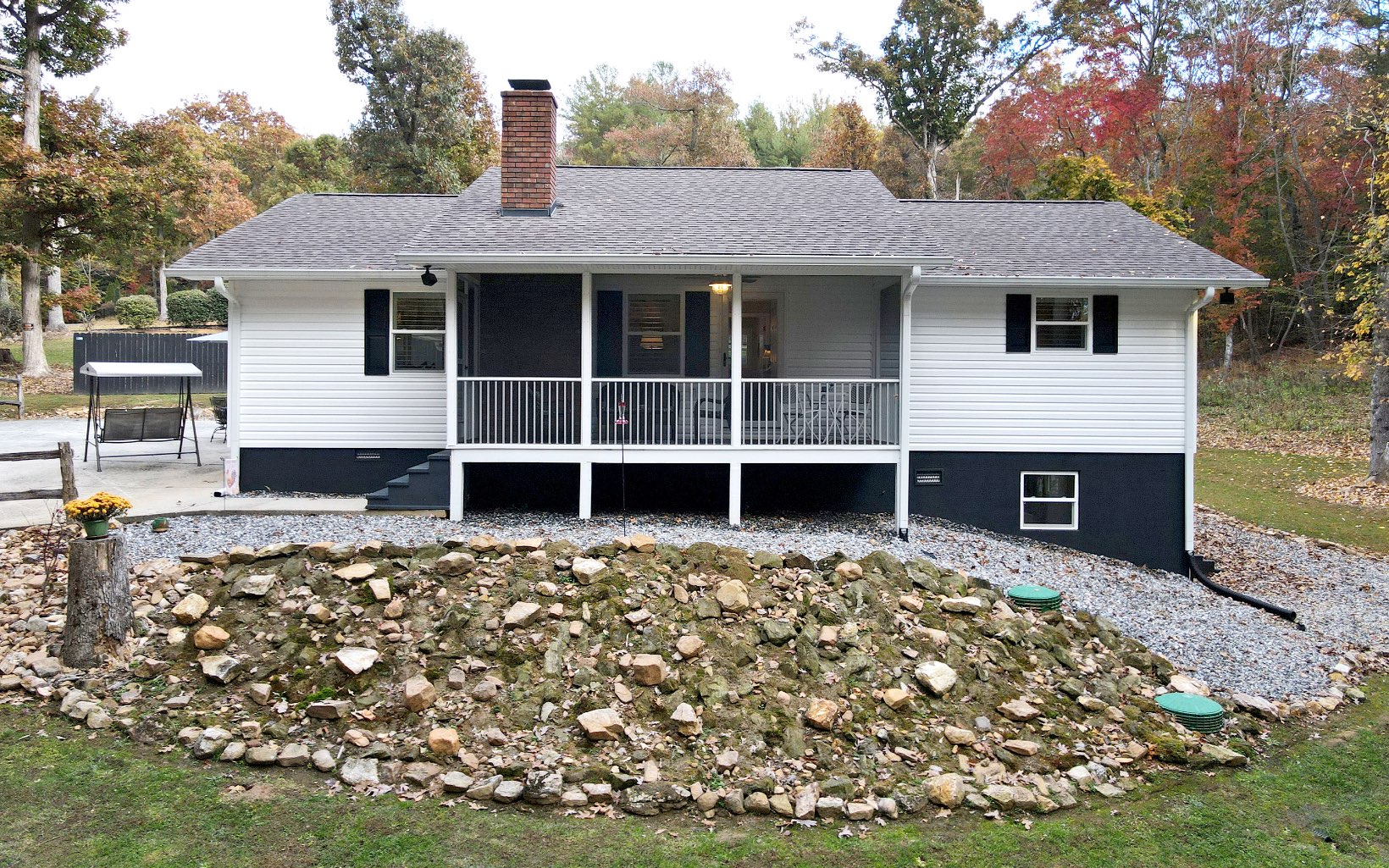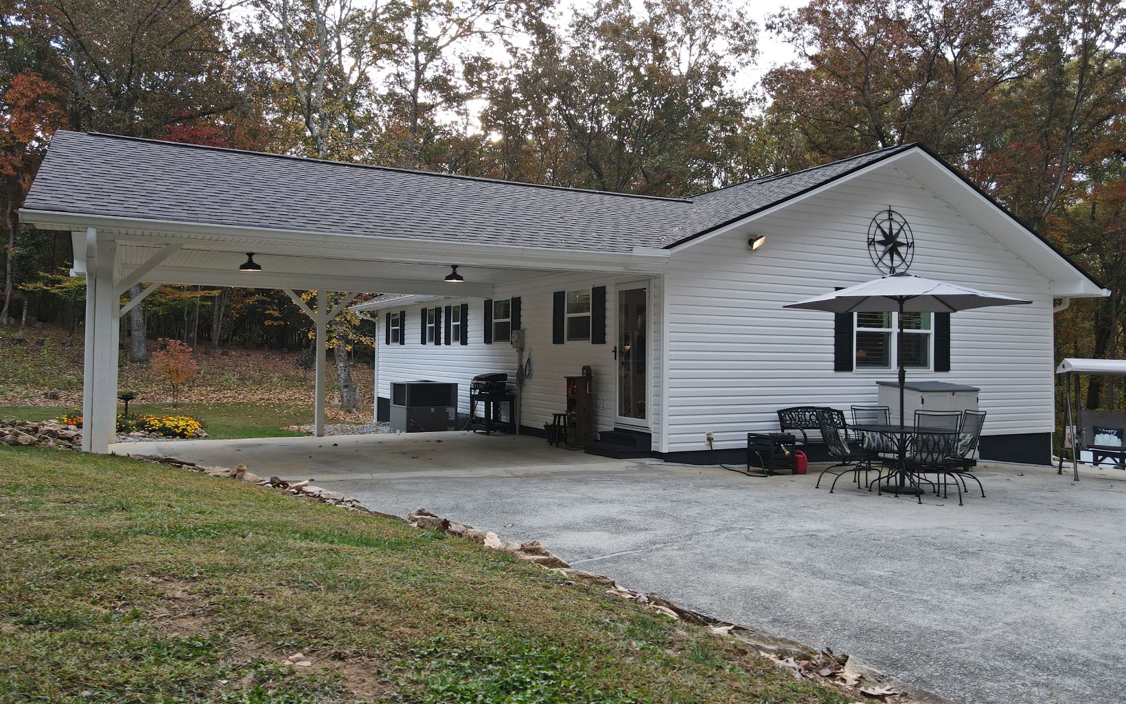 Immaculate Home, Like New construction. This Charmer is only 2 miles to the Historic Downtown Courthouse of Blairsville, GA. 1.7 Private gently rolling wooded acres. End of the road privacy. 2 car attached carport. The inside is beautifully appointed featuring 2BR/2BA, Open great room w/ wood stove in the fireplace, LVP floors throughout, kitchen is full of cabinets! Granite countertop and beautiful tiled backsplash. Large Laundry room w/ bank of cabinets. BIG bedroom closets! Screened Porch. NEW INTERIOR, Roof, Trusses, Vinyl Siding, Gutters, Appliances, Lights, sheetrock, crown moldings, Doors, electric and plumbing, water heater, HVAC, commodes, sink tops, showers. This home is a "Must See"! Daylight Basement room in the crawl space. Enjoy the natural landscape and fire pit area. So convenient to downtown, shopping, doctors, hospital, etc.