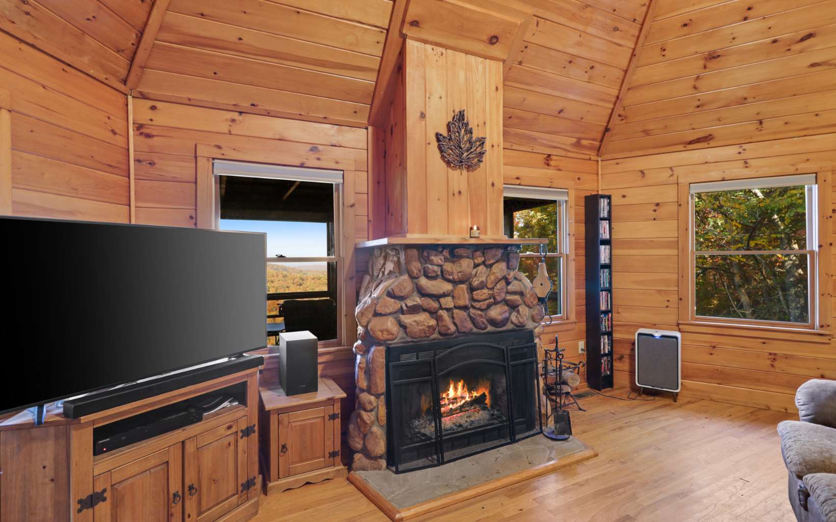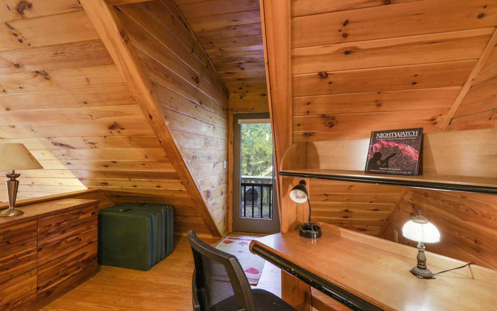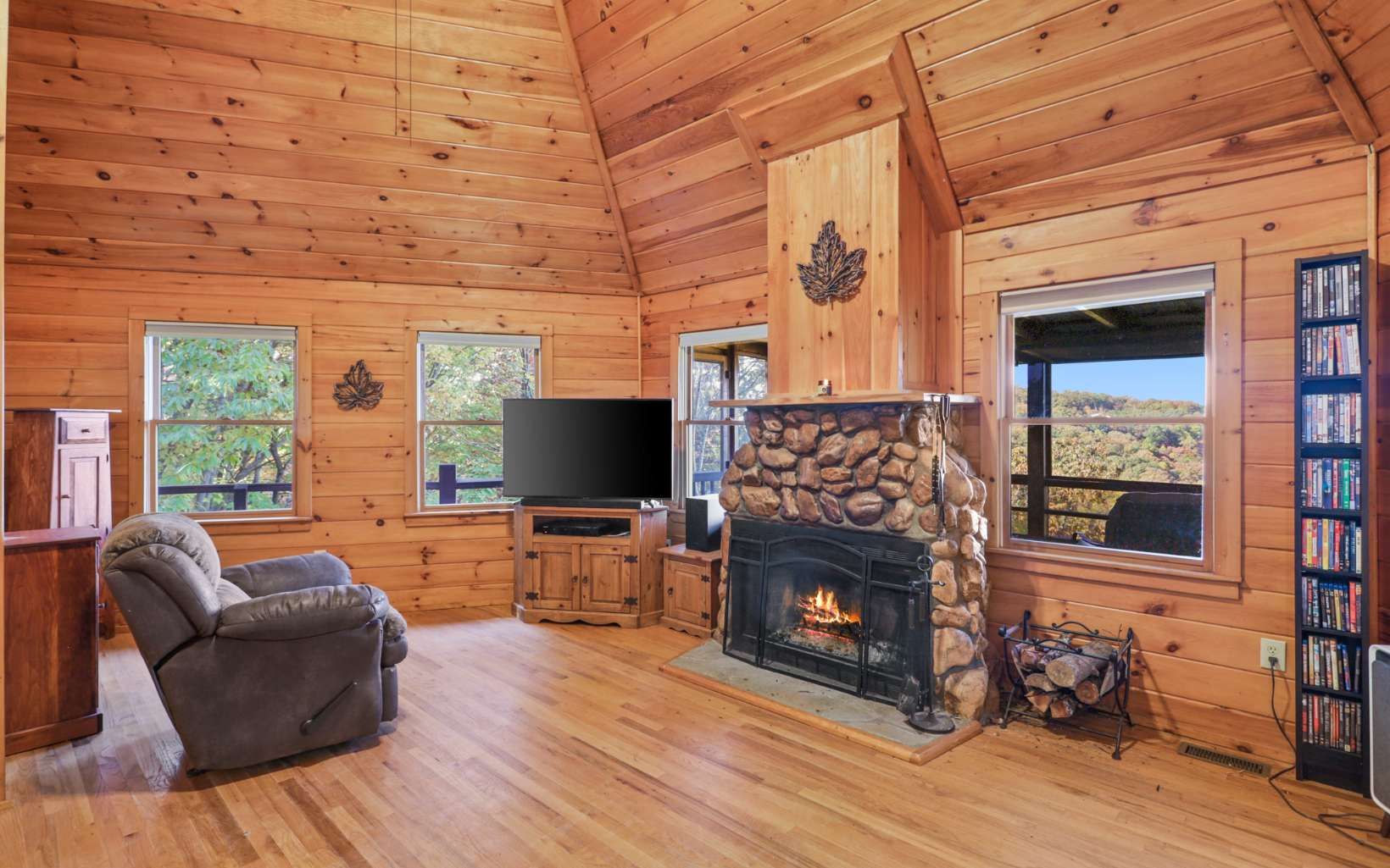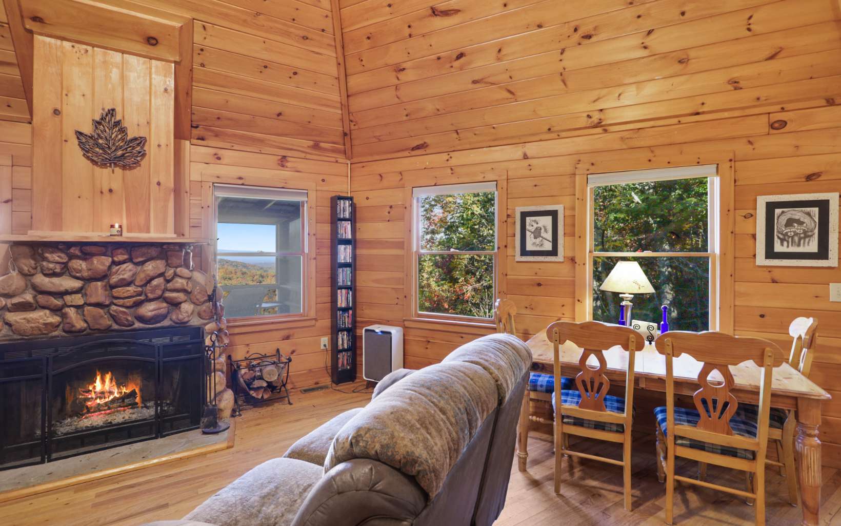 Oh my…what a jaw dropping Mountain Vista….2-bedroom, 2-bath with pine floors and white pine interior with a cozy sleeping loft and a porch off sleeping loft to enjoy morning coffee, offering a perfect escape into nature. Nestled amidst the spectacular layered long range Mountain View’s in this westward facing cabin, you'll be treated to glorious sunset views. The centerpiece of the living room is a beautiful stone wood burning fireplace, creating a warm and inviting atmosphere. The cabin comes fully furnished, ensuring you're ready to relax and enjoy your stay. For added entertainment, the terrace level features a recreation room that opens up to a deck with a soothing hot tub – perfect for unwinding while taking in the mountains and stargazing. You can also gather around the fire pit area on cool mountain evenings, creating memorable moments with friends and family. Located on 2 lots in Enchanting Forest which comprise 2.53 acres & situated on a quiet road that circles the mountain to provide a scenic door-to-door 1 mile walk - commonly with deer sightings. Secluded & private, this cabin is an ideal short-term rental property, just minutes away from the charming town of Blue Ridge, where you can explore restaurants and shopping. Additionally, you're conveniently close to Lake Blue Ridge and the Toccoa River, offering a wide range of outdoor activities. Whether you seek adventure or serenity, this cabin is an amazing place in North Georgia to own a vacation home.