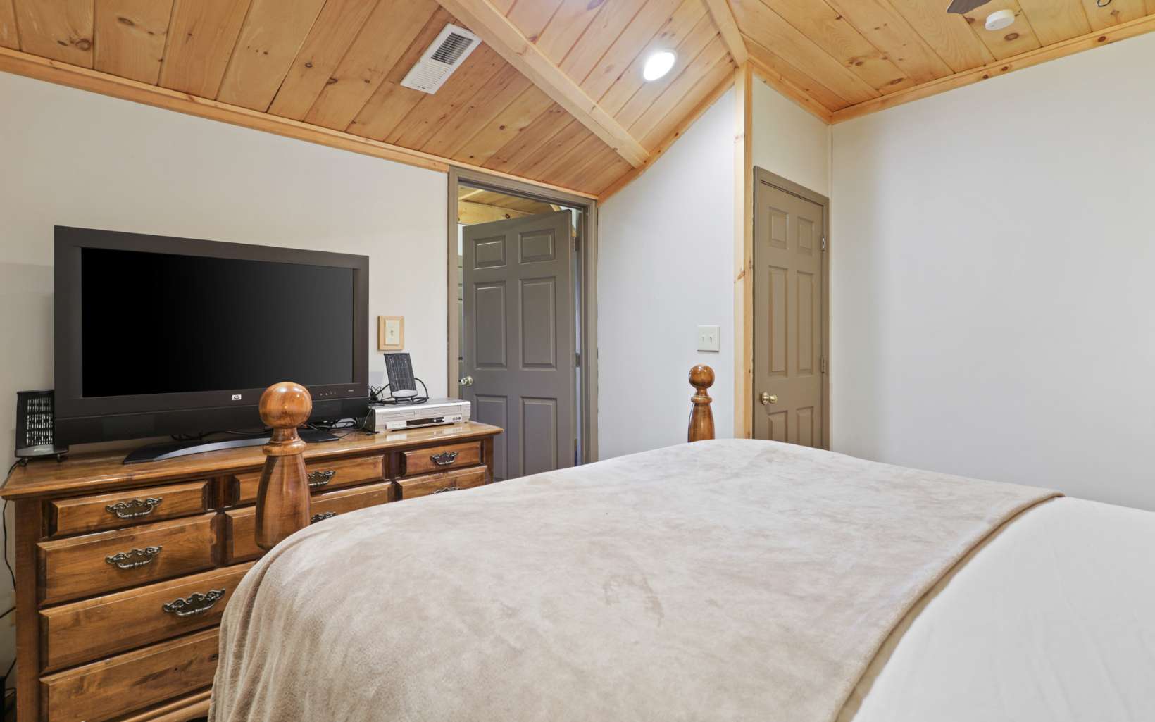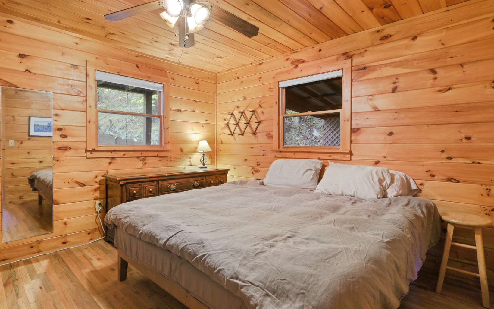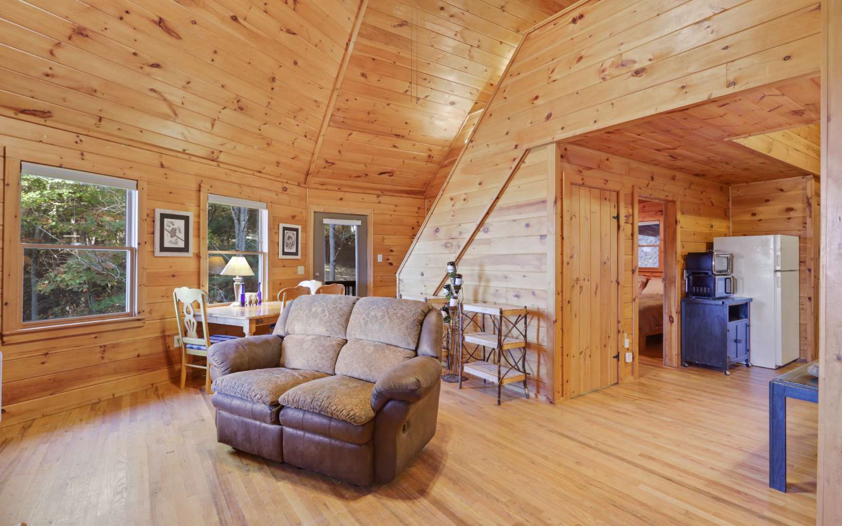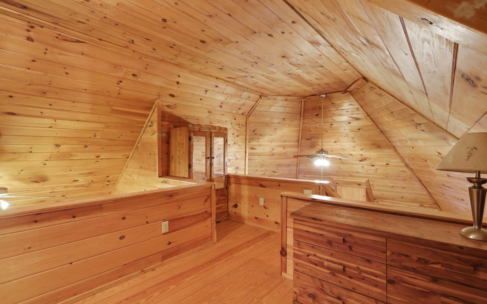 Oh my…what a jaw dropping Mountain Vista….2-bedroom, 2-bath with pine floors and white pine interior with a cozy sleeping loft and a porch off sleeping loft to enjoy morning coffee, offering a perfect escape into nature. Nestled amidst the spectacular layered long range Mountain View’s in this westward facing cabin, you'll be treated to glorious sunset views. The centerpiece of the living room is a beautiful stone wood burning fireplace, creating a warm and inviting atmosphere. The cabin comes fully furnished, ensuring you're ready to relax and enjoy your stay. For added entertainment, the terrace level features a recreation room that opens up to a deck with a soothing hot tub – perfect for unwinding while taking in the mountains and stargazing. You can also gather around the fire pit area on cool mountain evenings, creating memorable moments with friends and family. Located on 2 lots in Enchanting Forest which comprise 2.53 acres & situated on a quiet road that circles the mountain to provide a scenic door-to-door 1 mile walk - commonly with deer sightings. Secluded & private, this cabin is an ideal short-term rental property, just minutes away from the charming town of Blue Ridge, where you can explore restaurants and shopping. Additionally, you're conveniently close to Lake Blue Ridge and the Toccoa River, offering a wide range of outdoor activities. Whether you seek adventure or serenity, this cabin is an amazing place in North Georgia to own a vacation home.