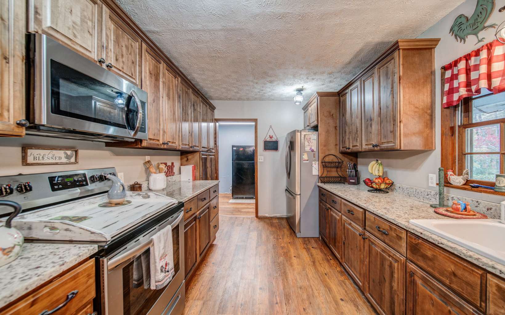 Welcome to your dream farmhouse nestled in the heart of Cherry Log, GA, a picturesque haven where classic charm meets modern convenience. This timeless 1940s home has been lovingly renovated, offering the perfect blend of vintage allure and contemporary comfort. With a sprawling 3-acre lot, this property invites you to experience the true essence of country living. As you step through the door, you're greeted by the warmth of history and the promise of a cozy home. The farmhouse features meticulously renovated bathrooms, flooring, and kitchen, creating a seamless fusion of old-world elegance and modern style. While some finishing touches remain, this property allows its new owners the opportunity to add their personal touch, making it truly their own. The main floor boasts a spacious master bedroom, complete with convenient walk-in closet, ensuring that your retreat is as functional as it is luxurious. Another sizable bedroom and full bathroom is on the main level, with the perfect degree of separation and privacy from the primary suite. An adjacent office or another additional bedroom space offers versatility to accommodate your unique lifestyle needs. Upstairs, a delightful surprise awaits: a bonus room with an accompanying bathroom, primed and ready to be transformed into an extra suite, guest room, or entertainment space. The potential here is limited only by your imagination. Outside, the enchantment continues. The level lot features a meticulously cleared garden area, p