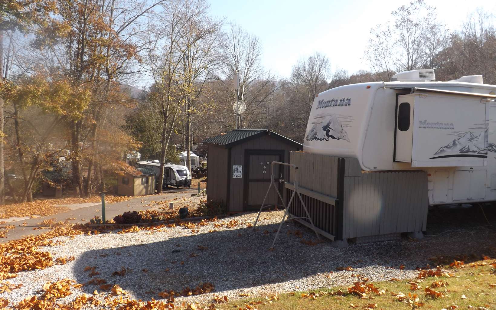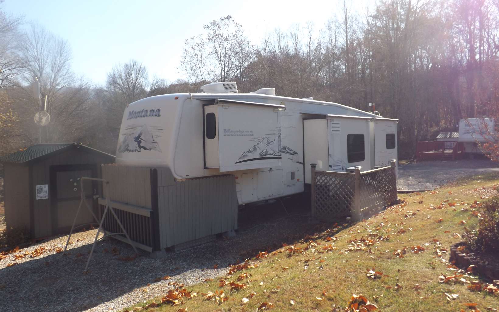 2 For The Price Of 1.....2 Beautiful Drive-Thru RV lots with a fully furnished (other than personal items) 5th wheel on lot 71. These 2 lots are side by side, easy in and out. Choestoe Valley RV Park is located on the south side of Union County close to Vogel State Park, Brasstown Bald, and the Appalachian Trail. Both properties will feature very nice metal roof storage buildings, (refrigerators in both buildings) and concrete pads out the front doors. Lot 71 has a very nice entertaining-type outdoor deck. The RV kitchen features a nice stainless steel kitchen prep table for cooking. You will enjoy having your washer & dryer in the RV. Additional washer & dryer will be in the clubhouse if needed. These two lots are side by side.