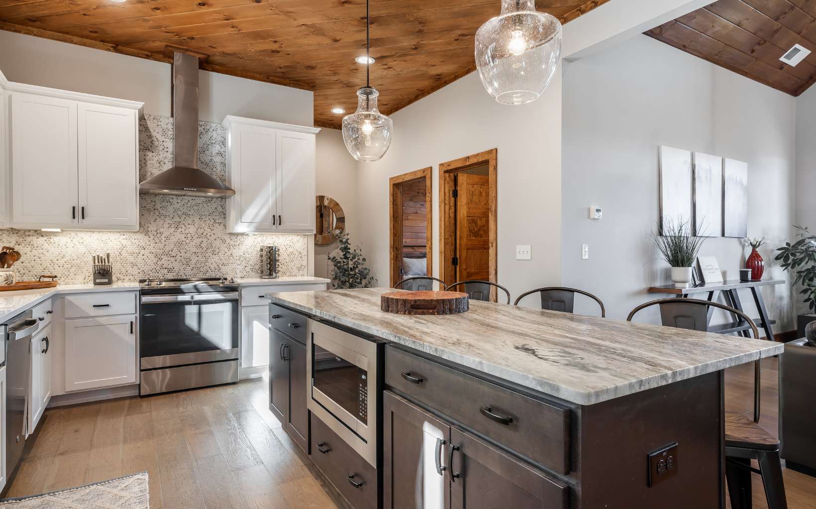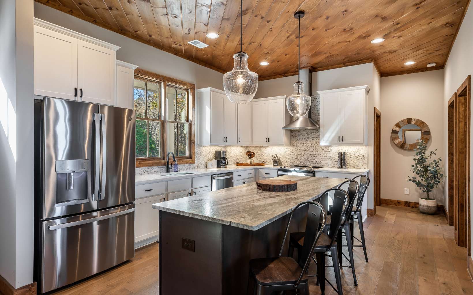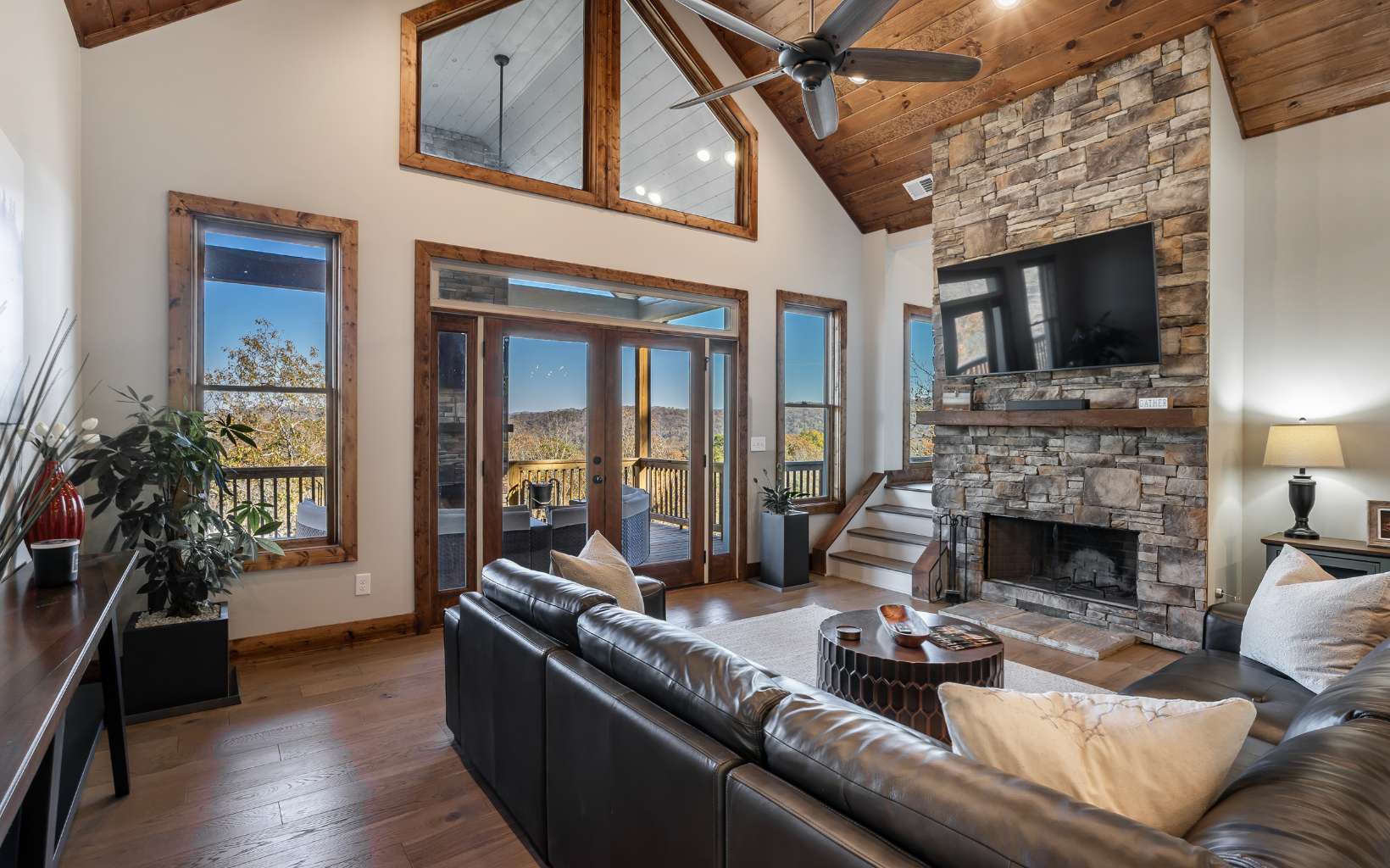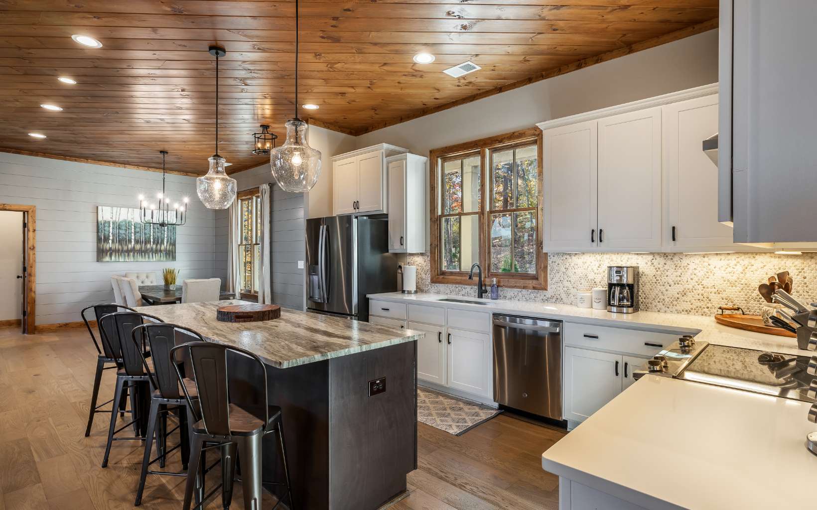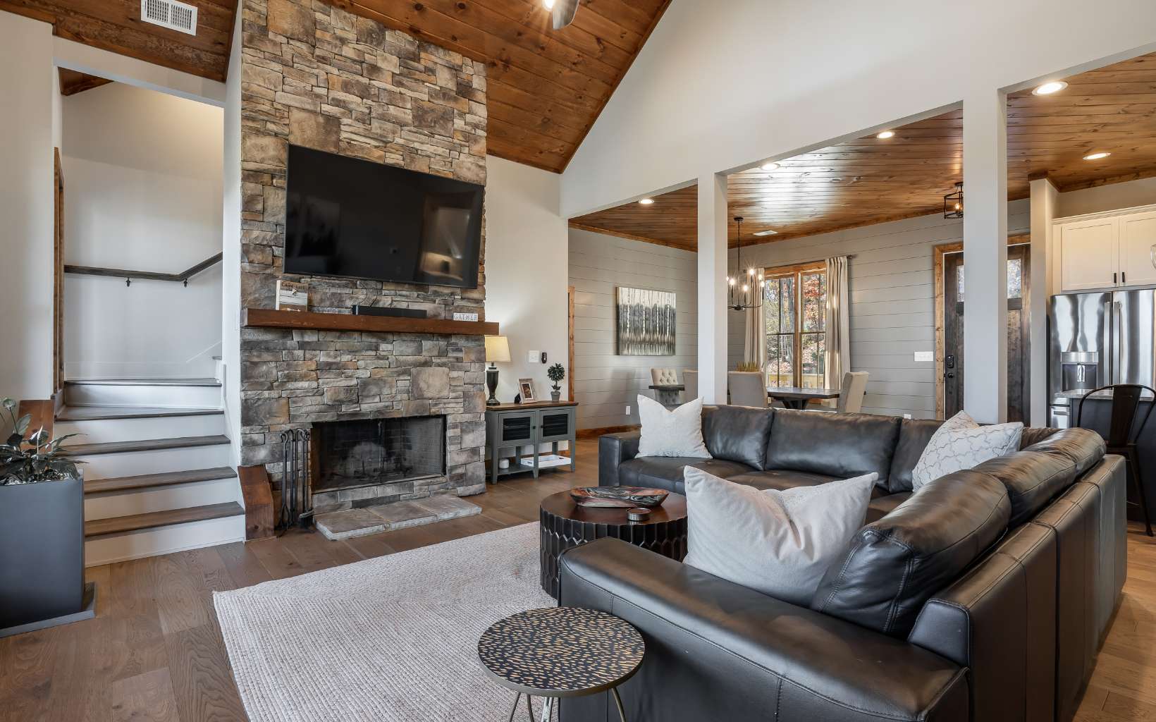 Welcome to your FULLY FURNISHED dream mountain retreat! Nestled in the picturesque Blue Ridge Mountains of Georgia, this 4-bedroom, 3-bath home offers the perfect blend of rustic charm and modern comforts. From the moment you arrive, you'll be captivated by the natural beauty and tranquility that surrounds this property. The open-concept design, vaulted ceilings, and large windows allow natural light to flood the living areas, creating a warm and inviting atmosphere. The spacious living room boasts a cozy stone fireplace, perfect for those chilly mountain evenings. The well-appointed kitchen features granite countertops, stainless steel appliances, and ample cabinet space, making it a delight for any chef. A breakfast bar and adjacent dining area provide plenty of room for family and friends to gather.