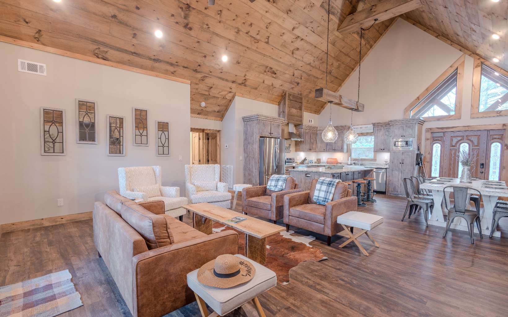 Wait until you see this Amazing 2022 Luxuriously Furnished Mountain Craftsman sitting on Flat Branch Creek and 1.5 acres. Beautiful Creek & Pasture views Year Round and Seasonal Mountain views all less than 10 minutes to Ellijay. Inside this Gorgeous 3 Bedroom & 2 Bath home you will find a split floor plan with vaulted ceilings. The Kitchen has stainless steel appliances, Beautiful granite counter tops, Custom cabinets and Custom center island. Spacious Great room with stacked stone gas log fireplace. Owner's suite with vaulted ceilings, ensuite bathroom with double vanity, tiled shower and large closets. Step out onto the party deck for drinks overlooking the rushing Flat Branch Creek or Sink into the New Hot Tub and unwind. There are 2 Firepit areas, one near the house or take the walking trail down to the creek where you will find the second firepit. Plenty of parking and circle driveway. Home sits quietly at the end of the cul de sac. Call your agent today for a private tour.
