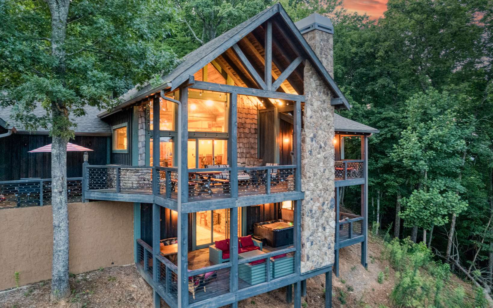 Paradise found! Protected, private and rare panoramic views close to Blue Ridge at an elevation of 2100 feet with cool breezes and the music of Fighti