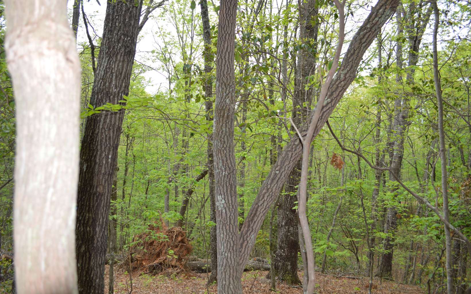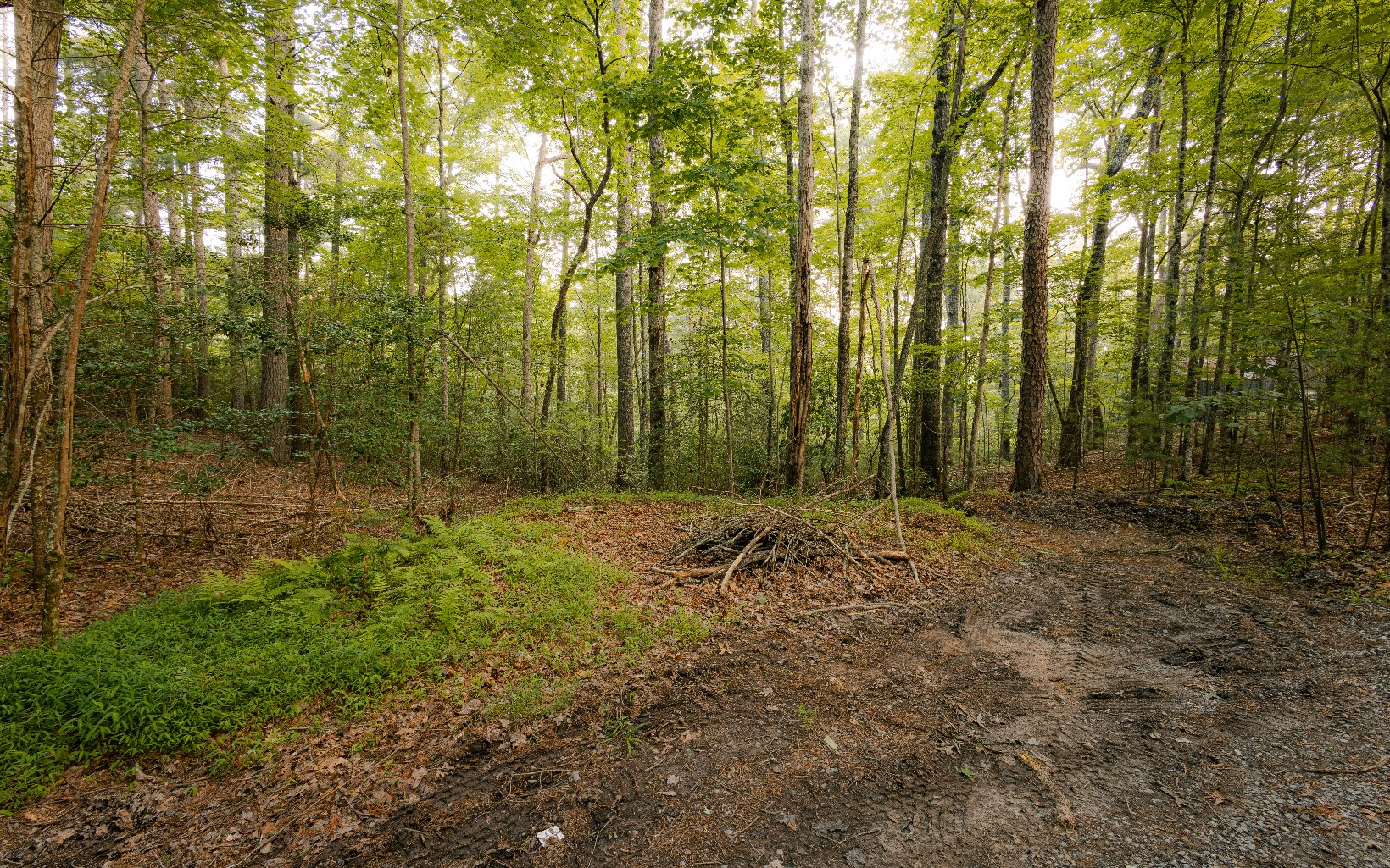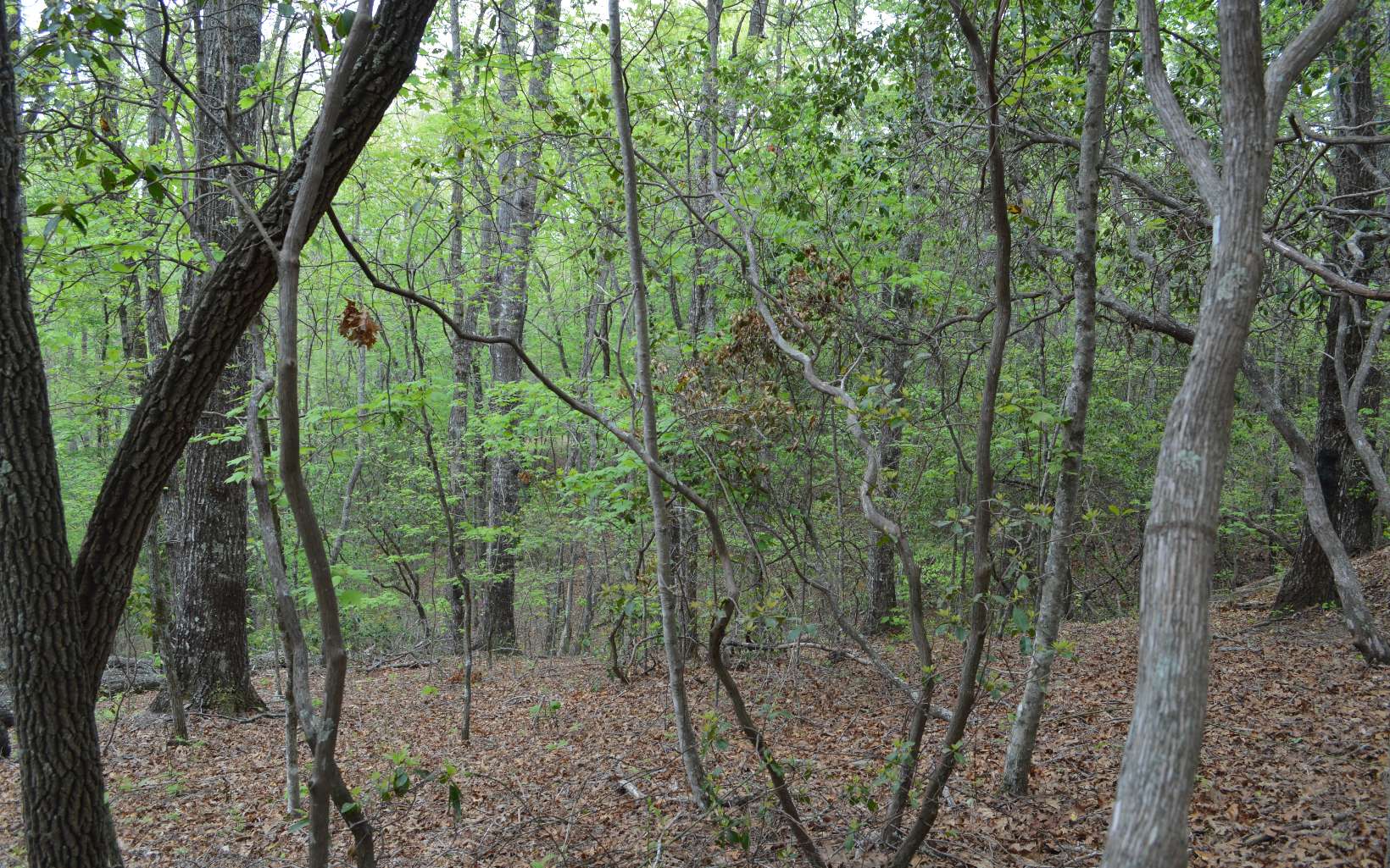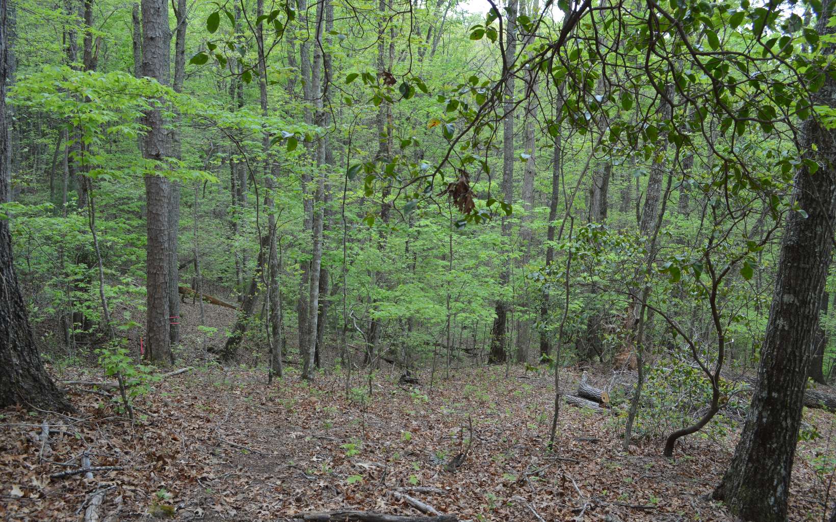Gentle wooded lot full of mountain laurel and beautiful trees. Narrow entrance at the top then the l