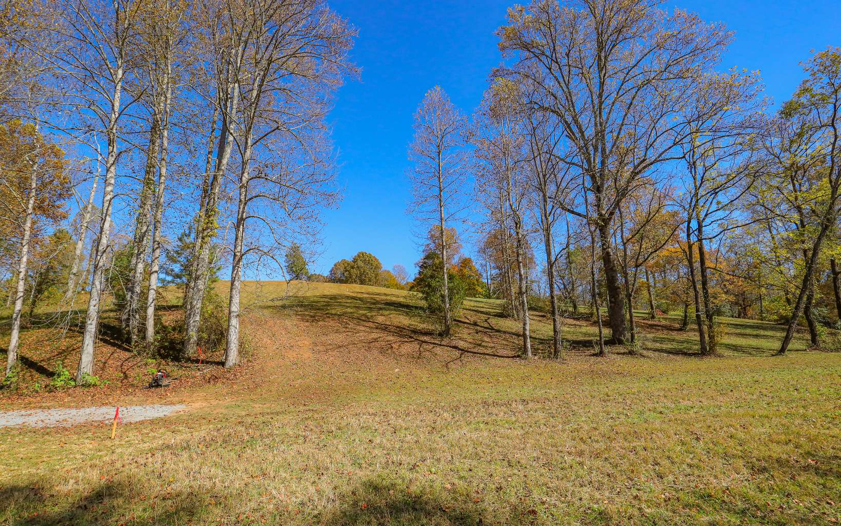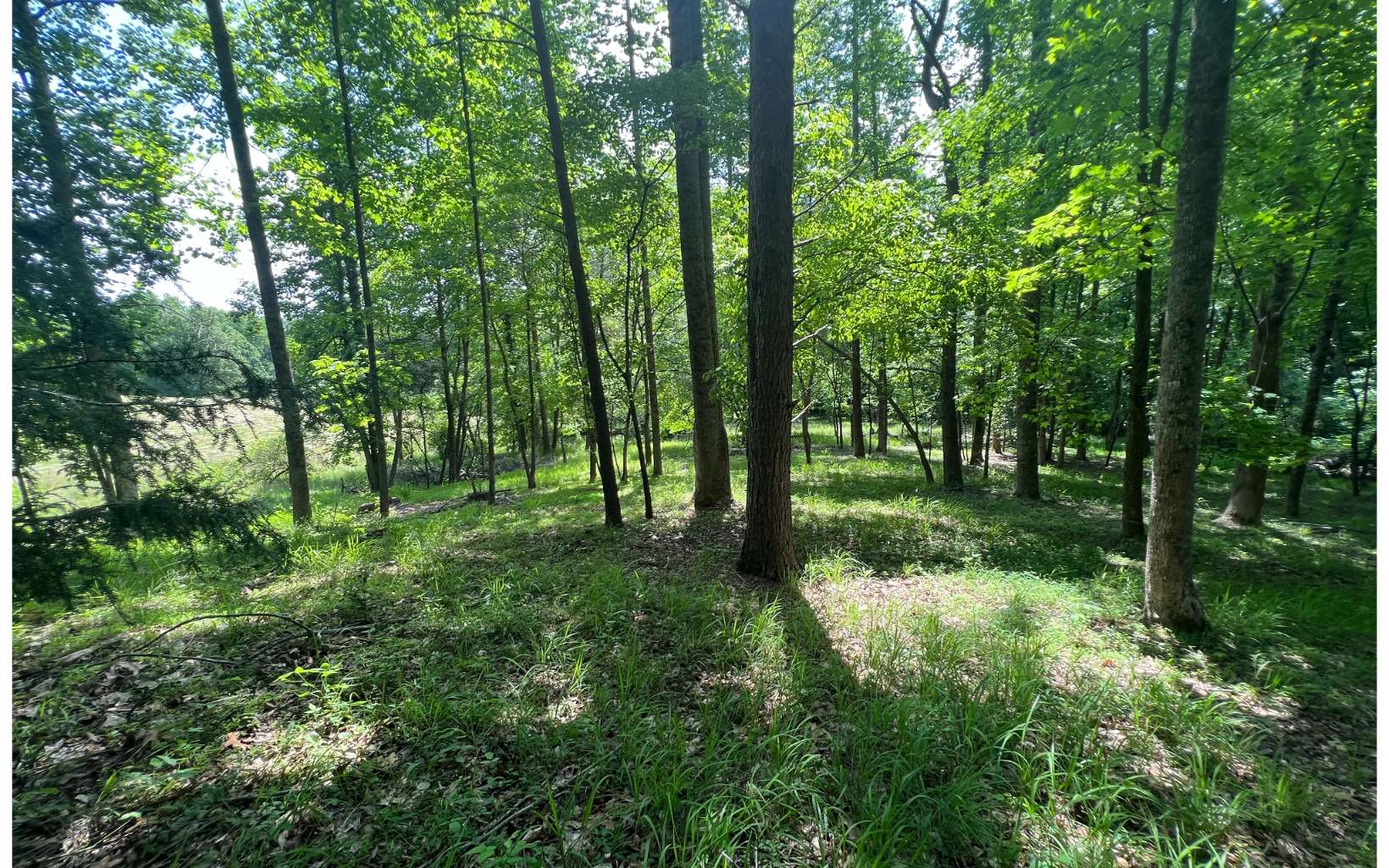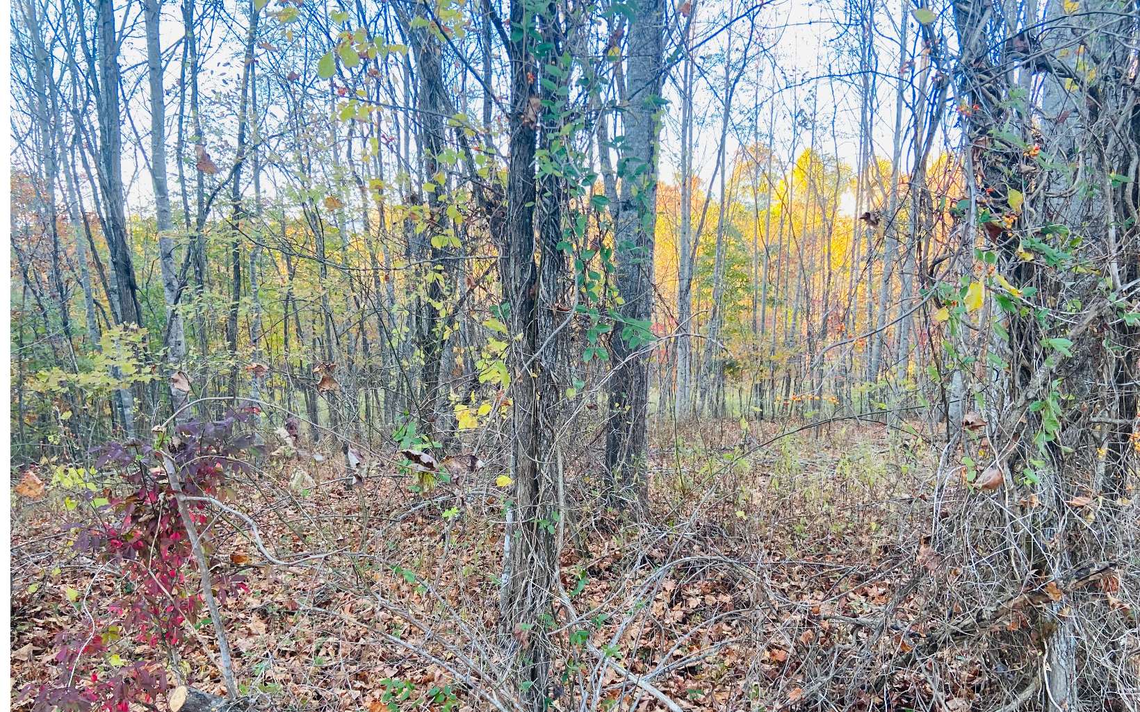Gentle wooded lot full of mountain laurel and beautiful trees. Narrow entrance at the top then the l