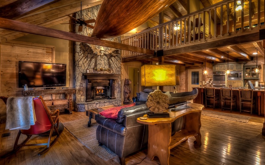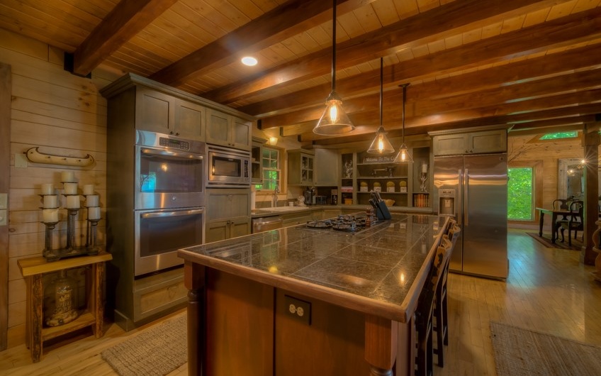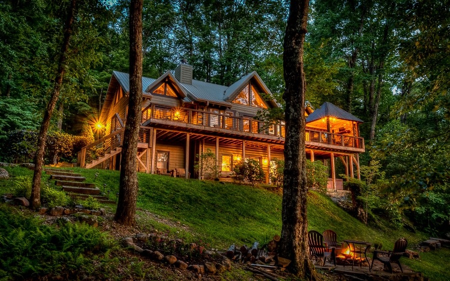 Here, nestled deep in the woods, situated on two acres of land with gorgeous long-range vistas, sits your Blue Ridge Mountain Get-a-way. This beautifully appointed 4 Bedroom, 4 Bath North Georgia cabin rental, with maple hardwood floors and striking architecture, is professionally decorated with com