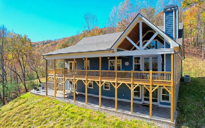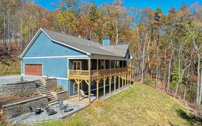 Experience True Mountain Living just minutes from Downtown Blue Ridge! This stunning 5 bedroom, 4.5 bath home will WOW you at every turn. From the peaceful setting upon entering the paved drive to the soothing sounds of the waterfall feature as you step upon the wrap around porch, this home will not