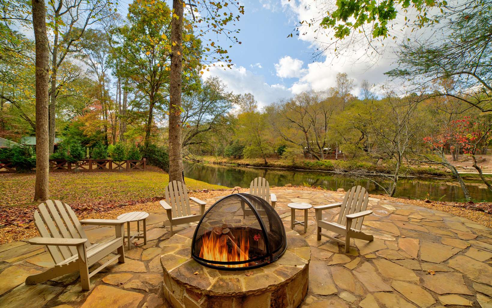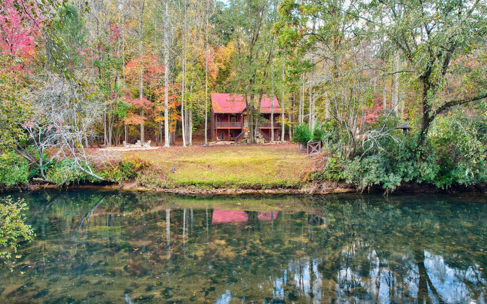 Introducing a stunning fully furnished home nestled along the picturesque Toccoa River, this property offers a truly enchanting living experience. With 140 feet of prime river frontage, you'll have the soothing sound of flowing water right at your doorstep. The outdoor space is designed for relaxati