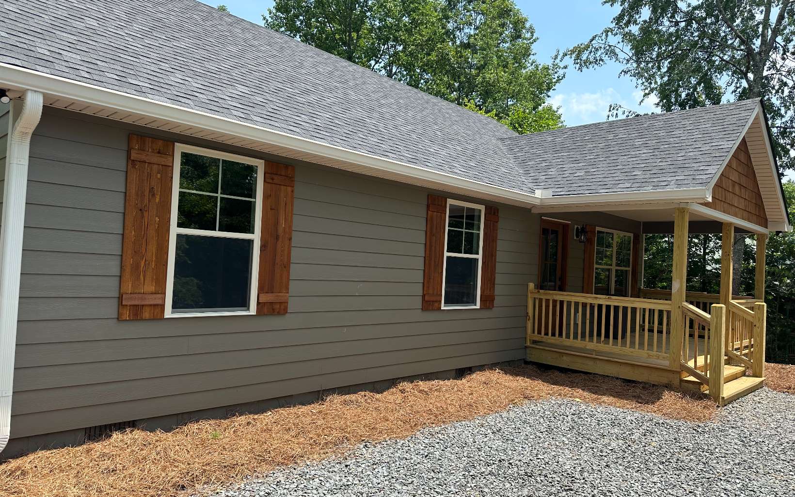 We currently have this 3 bed 2 baths currently under construction, in the sought after Coosawattee community. All of the bedroom ceilings are vaulted and wood covered, all interior doors are wood and stained to match. The living room/kitchen combo is accented by the fireplace and plenty of lighting.