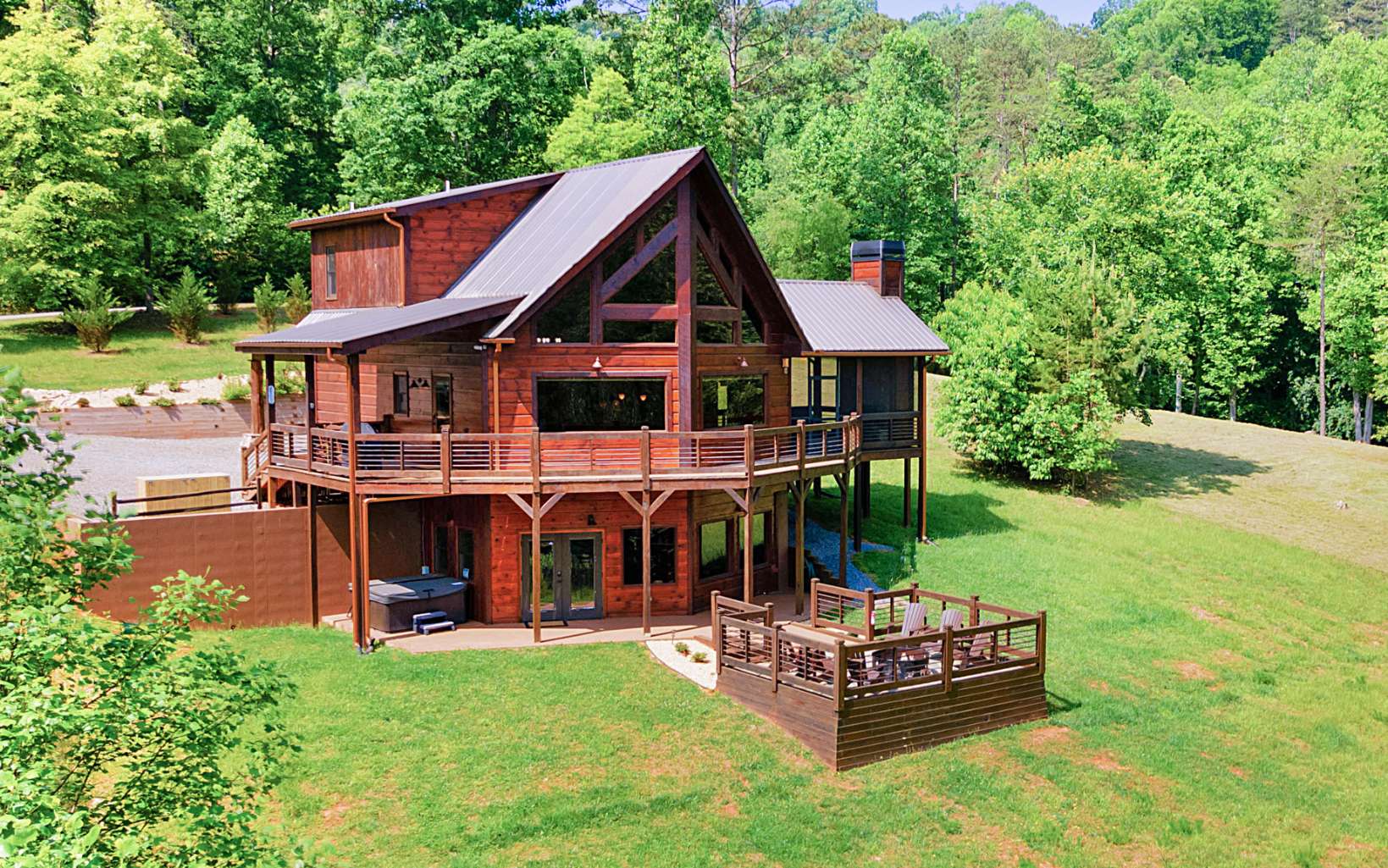 Toccoa River Front cabin in the Aska Adventure Area. If you're looking for a vacation rental investment to fit the whole family - Look No More!!! This unique cabin sitting directly across from the rapids on the river has a little bit for everyone but the main attraction is the glorious decks overloo