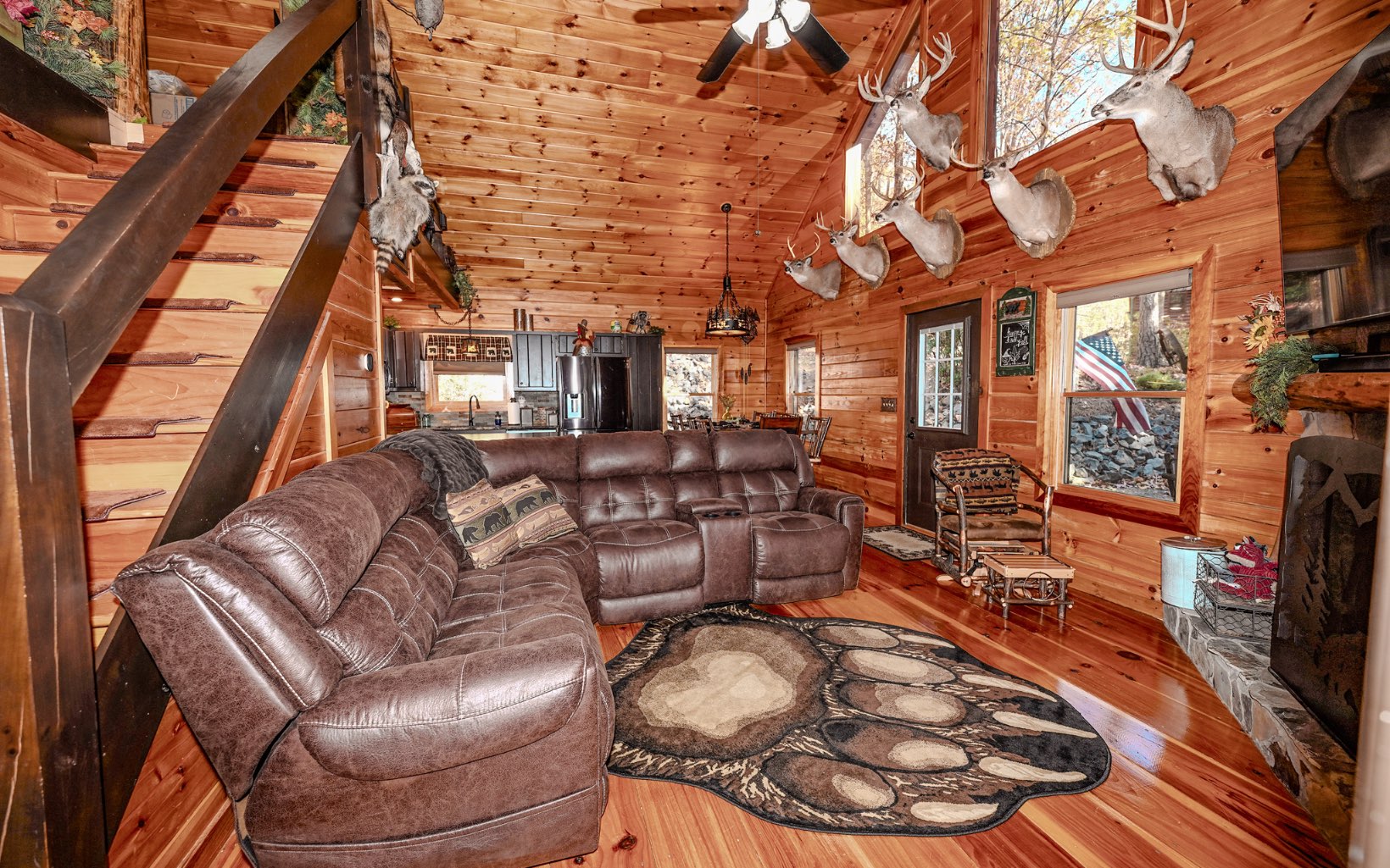 Beautiful log home tucked privately among the trees with Paved Road access and Fiber Internet! This is what having a cabin in the mountains is all about. This home offers rustic style and gorgeous updated kitchen and bathrooms, warm and cozy gar log fireplace, an amazing, large deck for entertaining