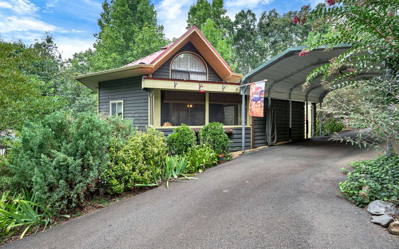 PEACEFUL & SERENE NORTH GEORGIA MOUNTAIN GETWAY WITH A BABBLING BROOK!! This property offers a 2007 Pioneer camper with metal carport, porch area, bunk room, laundry room, barn/workshop! Septic & private well! Plus a great location that is close to Lake Chatuge, Hiawassee & Hayesville. Address is Hi