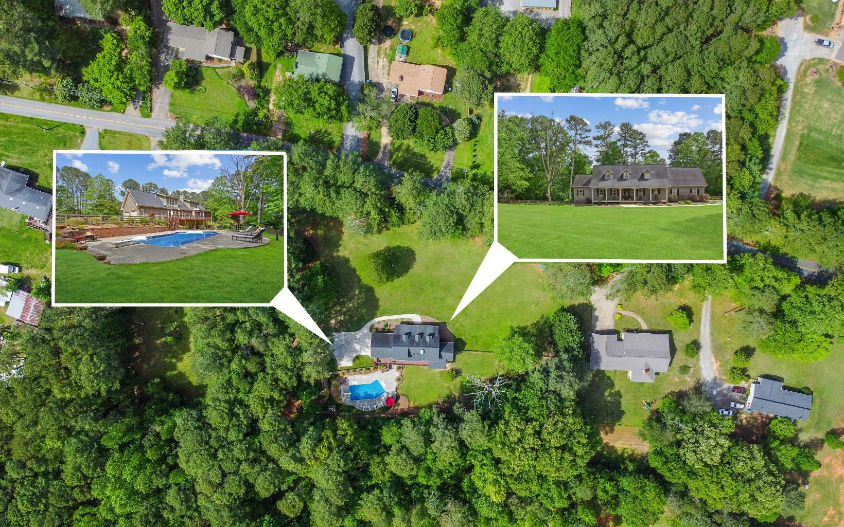 18.94 UNRESTRICTED Acres w/ 5br/5ba main house & 1/1 guest house!! Gentle woods, open meadows, private POND, extremely private setting fronts on 3 roads. 4.4 miles to town.Main home is All brick, MASSIVE kitchen w/ commercial appliances, 2 butler pantries, wood stv, vltd gathering great room w/ beam