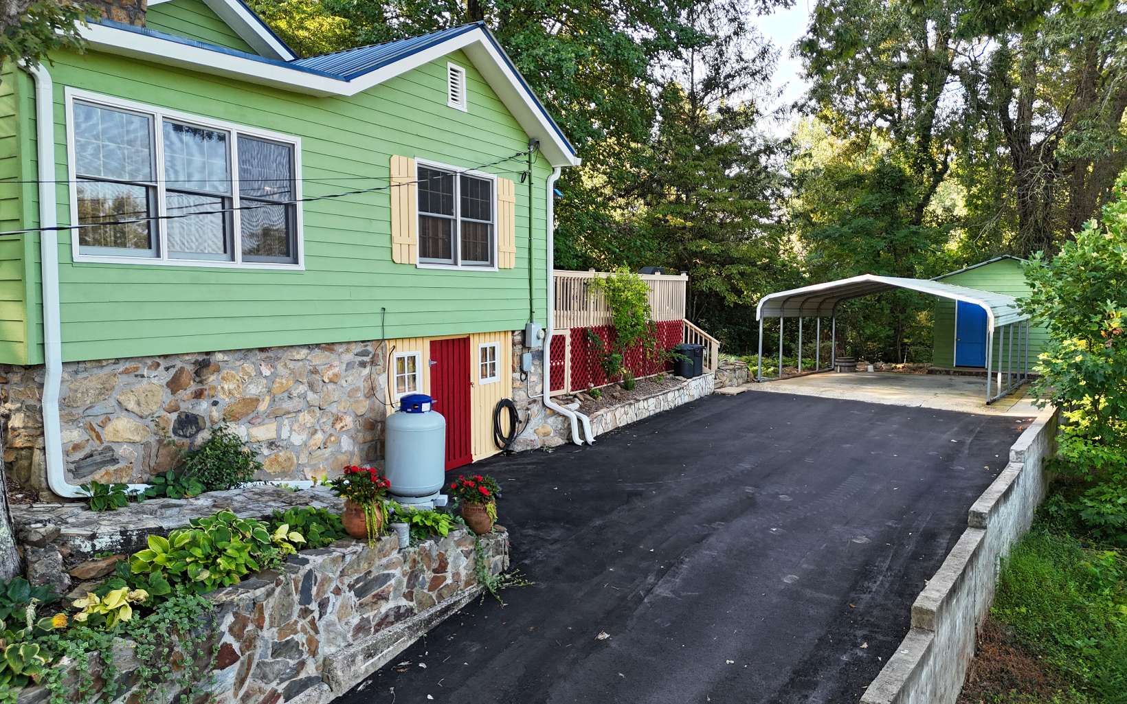 Charming Rustic Craftsman home is nestled on gentle, wooded & open 3+ acre tract in quaint and quiet area just off of scenic paved road & just minutes from historic downtown Ellijay & Blue Ridge, near lakes & rivers...three spacious bedrooms & two baths, master features ensuite “spa feel” bath w