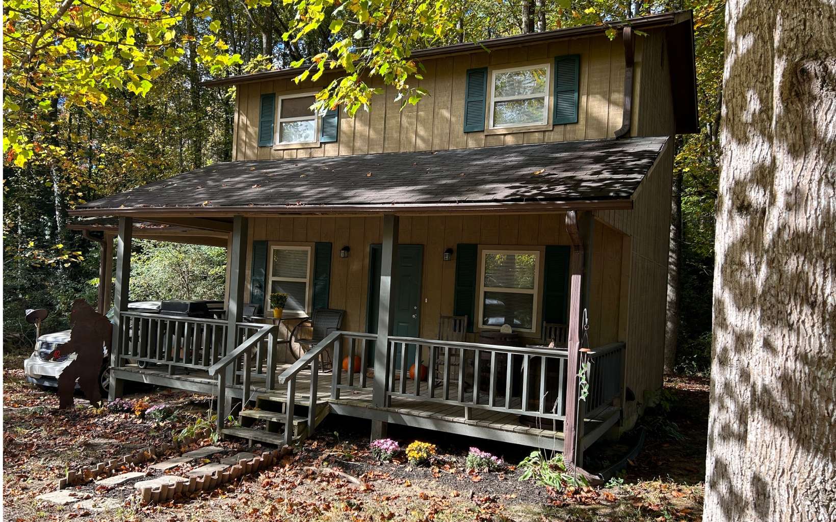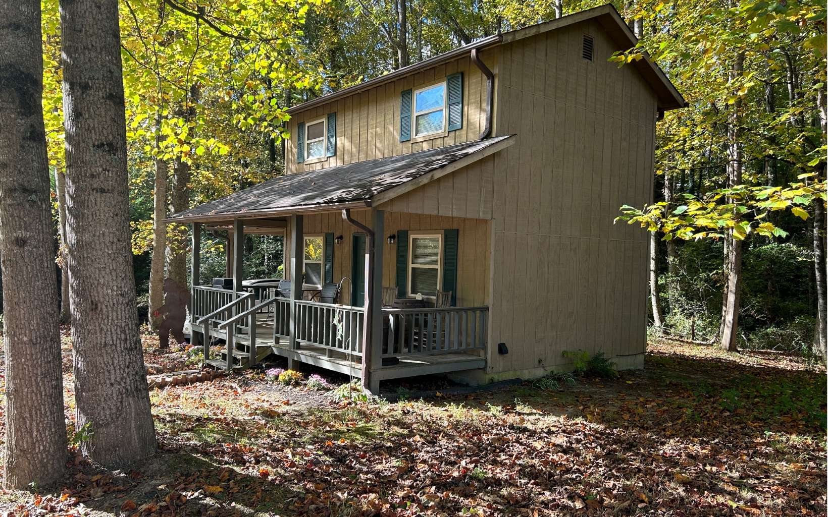 The ideal setting for a cabin nestled in the woods with a year round view. Located at the end of the road, this private 2 bedroom, 2 bath home has a fun, loft sleeping areas for the kids and an outdoor shower!! Lots of room to spread out on the beautiful upper deck, with a pergola for outdoor dining