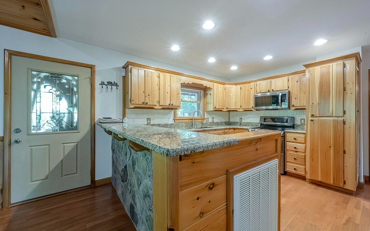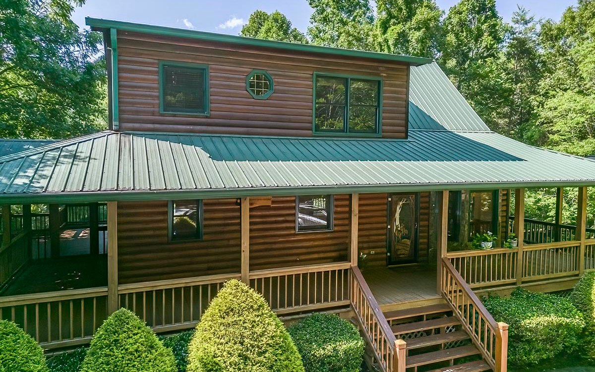 My Mountain Cabin waiting for you! PRICE REDUCED!! Landscaped yards. The front is wooded and the back yard is open and wooded with a portion of the backyard fenced. The total Acreage is two lots for privacy totaling 2.49 acres. Huge porches surround the outside of the cabin. The Interior is a mix of