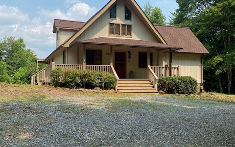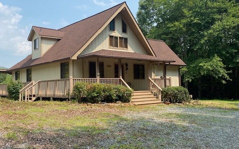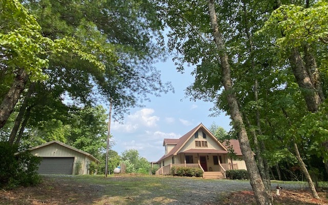You want find a prettier setting for this 3/2 chalet style home sitting on 4.33 acres. Master bedroom on main floor with second bedroom upstaires with bath. Easy access with circular drive. Detached 2 car garage with large workshop in back and storage area beneath. One car carport on side of garage.