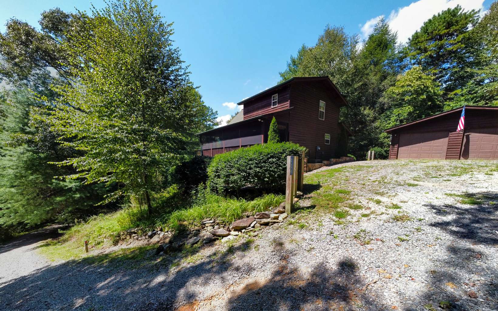 Beautiful 2 bed, 2 bath chalet with mountain view from loft! This home is on over 1+/- acre in a private setting just outside of town. Parking & fire pit area with 2 tool/storage sheds on the property. Step inside to find vaulted ceilings with large windows in the living room that let the natural li