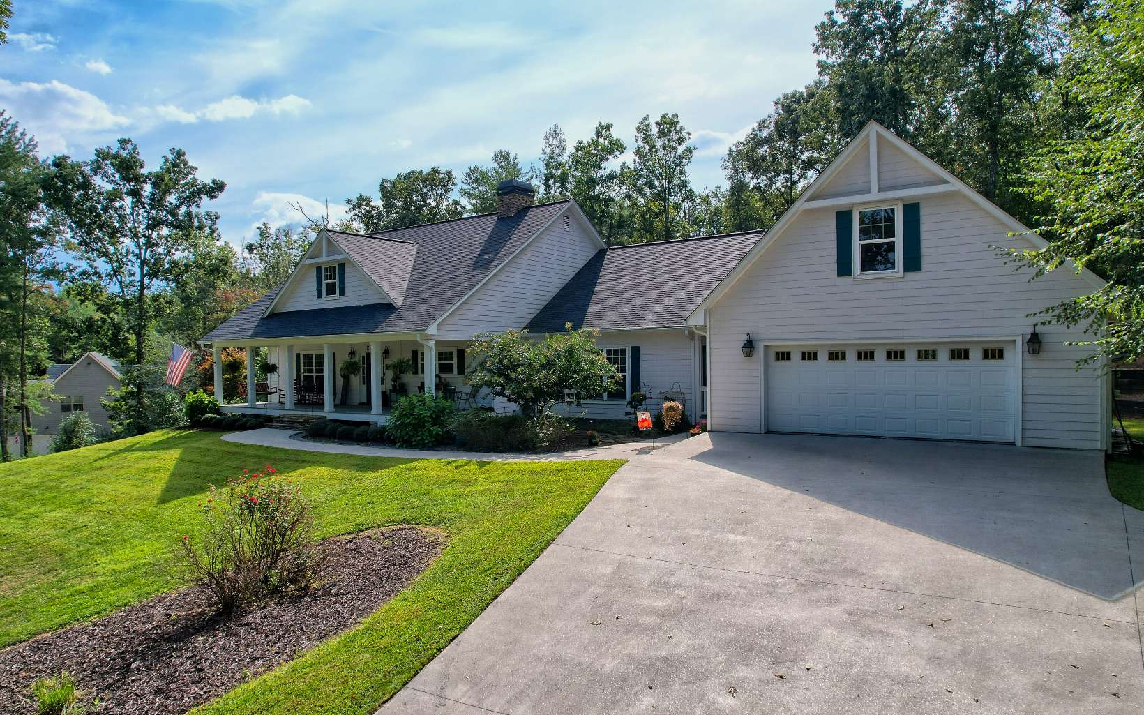 FURNISHED Fox Lake residence, built in 2016, boasting 4 bedrooms, 2 full baths, and 2 half baths. The home offers the ultimate in 1 level living. It exudes warmth and character, with expansive front and rear porches and inviting curb appeal. Main living is an open concept featuring vaulted wood ceil