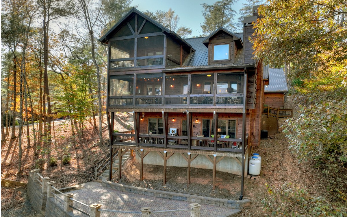 Tucked into a picturesque valley in the Swallows Creek area of Hiawassee is this four bedroom, three bath cabin on a gently sloping .76 acre lot. This home boasts two full kitchens, so the terrace level could be a mother-in-law suite or a separate income generating apartment! Easy access with a bedr