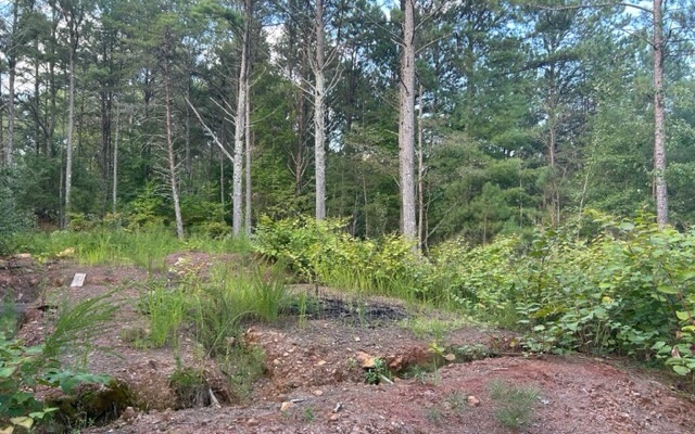 this lot checks off all the boxes! This cabin community is located only seconds from conveniences - post office,pharmacy,dining,breweries, and more! Some site work is already completed-grading,driveway,and footers for a small cabin. This property has many features such as a long range Mtn view, city water/sewer/trash pickup,paved road,underground utilities and more! Beautiful homes throughout this cabin community -a wonderful wooded lot within a secure gated community.These type properties are becoming very rare in this market. Don't miss out!