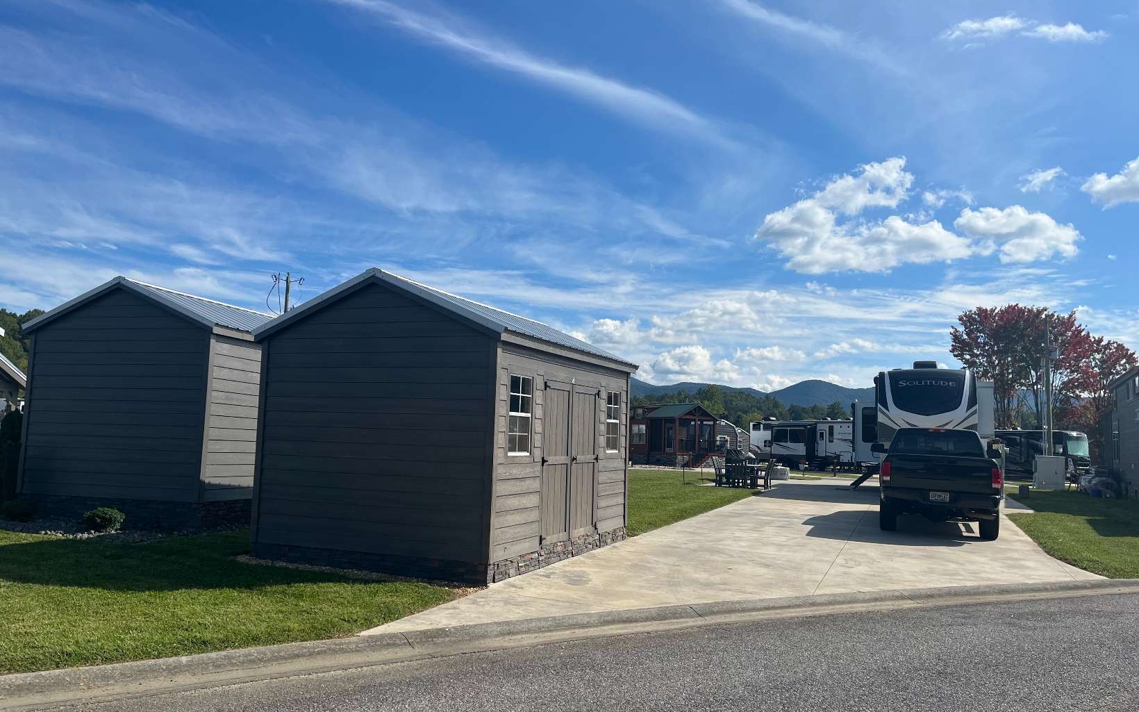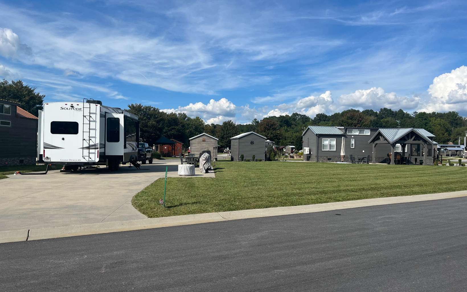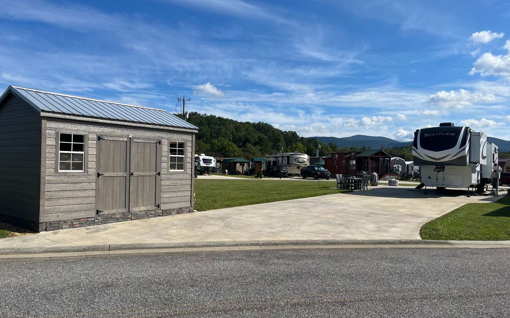 If you are looking for a pull through RV lot that does not have neighbors to your living side, this is the lot for you. This lot offers room for a tiny home while maintaining a pull through RV area and a 10' x 15' shed with a built in desk, shelves, power and plenty of outlets. The living side of the lot opens up to the largest community common area in the resort. This lot is also one of the highest lots in the resort and has never flooded. An extra 40' by 8' of concrete was added for all of your outdoor activities. Extra concrete was also added on the dump side with two septic dumping stations. Here you are guaranteed unobstructed sunrises and plenty of afternoon and evening shade. A must see!