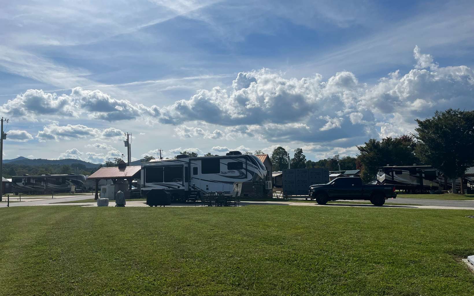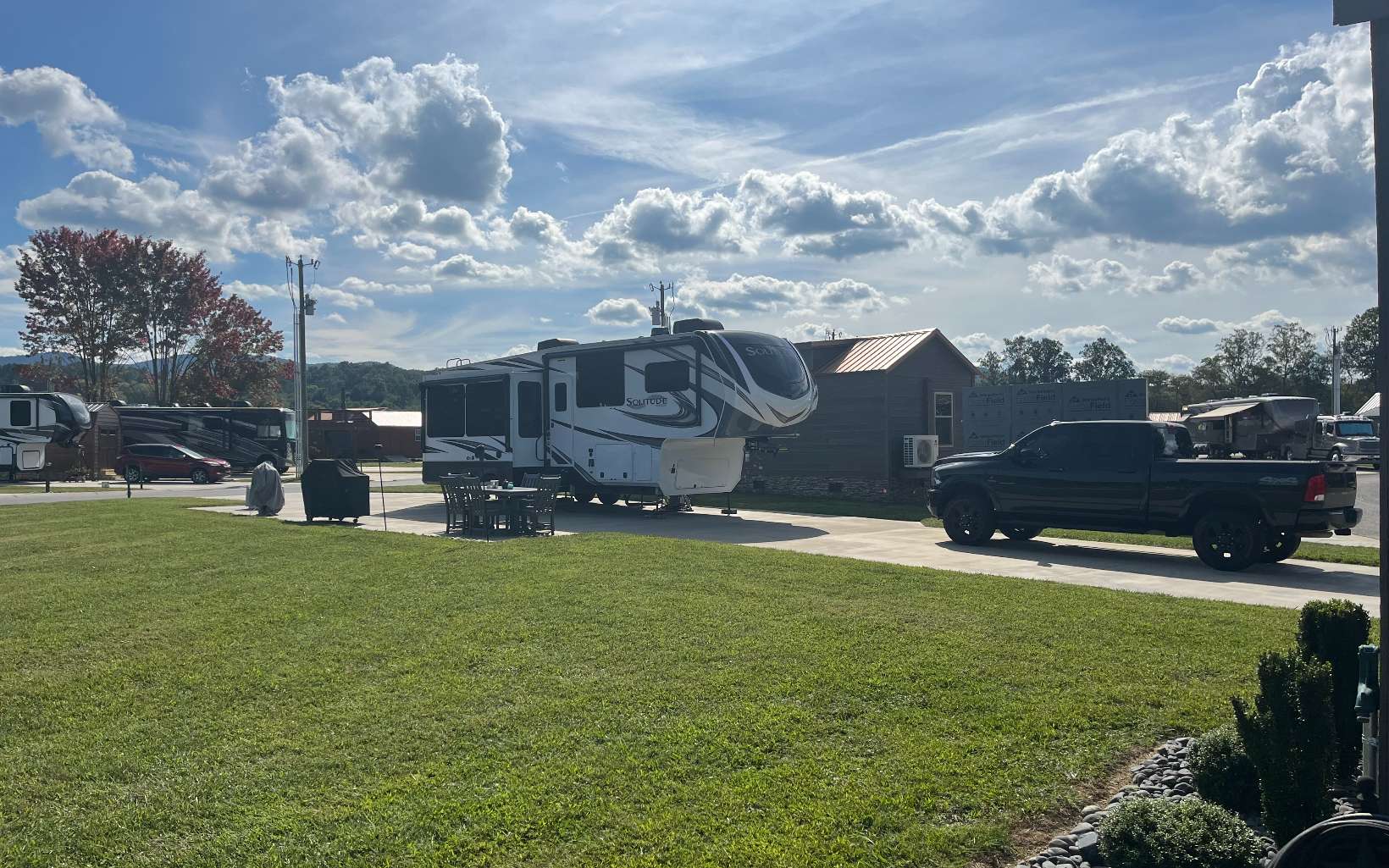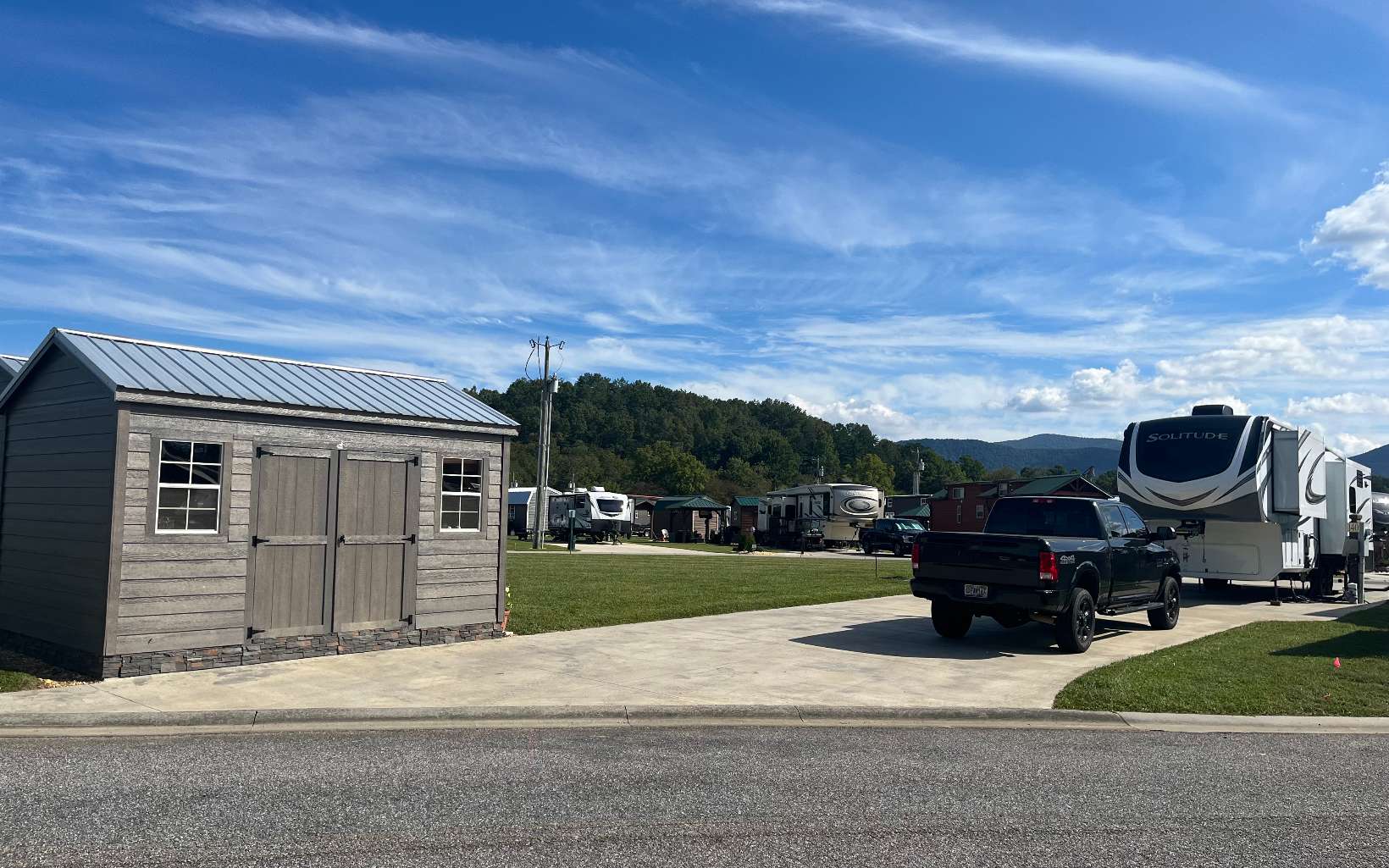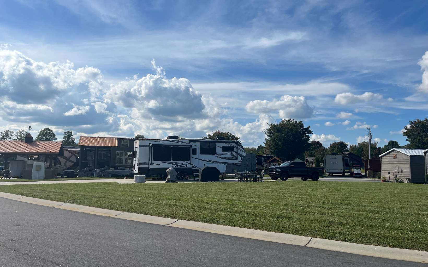 If you are looking for a pull through RV lot that does not have neighbors to your living side, this is the lot for you. This lot offers room for a tiny home while maintaining a pull through RV area and a 10' x 15' shed with a built in desk, shelves, power and plenty of outlets. The living side of the lot opens up to the largest community common area in the resort. This lot is also one of the highest lots in the resort and has never flooded. An extra 40' by 8' of concrete was added for all of your outdoor activities. Extra concrete was also added on the dump side with two septic dumping stations. Here you are guaranteed unobstructed sunrises and plenty of afternoon and evening shade. A must see!