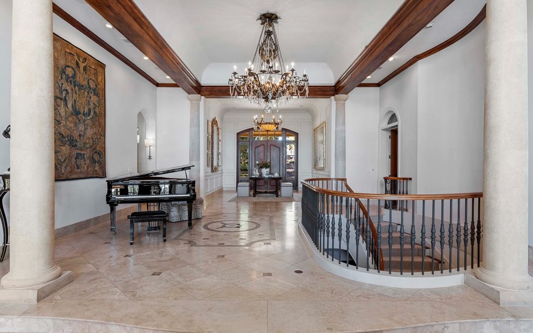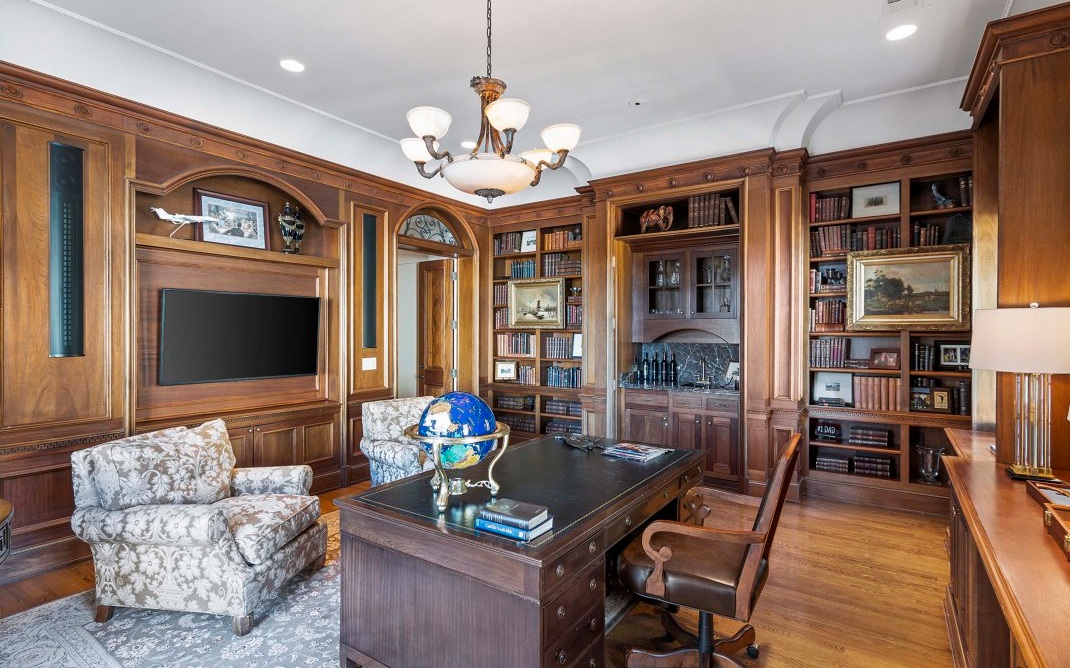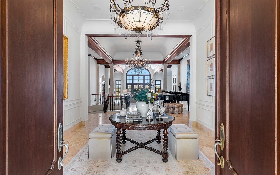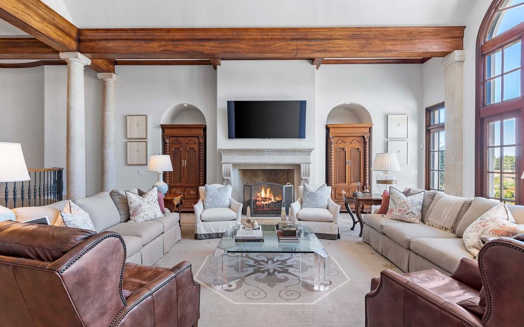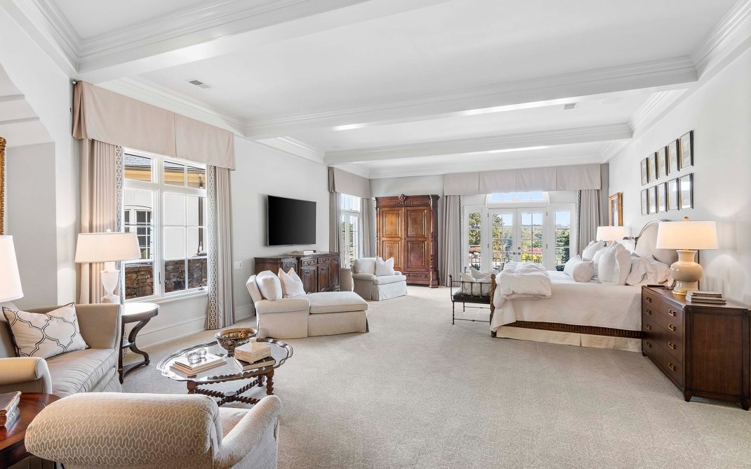 The magnificent footprint of this Hawks Ridge estate impresses you at first glance, while the wide front porch welcomes you like an old friend. Elegantly-lofted ceilings, oversized windows, and luxurious finishes abound inside and provide the perfect canvas for grand-scale entertaining. Host a bridge or poker tournament from the game room, a wine tasting with vintages from the expansive cellar, or watch the big game around the massive bar. Music lovers will appreciate the professionally-outfitted recording studio where no detail was overlooked. The impeccably-landscaped 8+ acres offer a multitude of gathering spaces that include a terraced pool & hot tub overlooking the Hawks Ridge golf course, an outdoor living room with a fireplace, 2 outdoor kitchens, a private courtyard, a screened-in porch with grill & fireplace, and of course the tennis court. MUST SEE to truly appreciate!