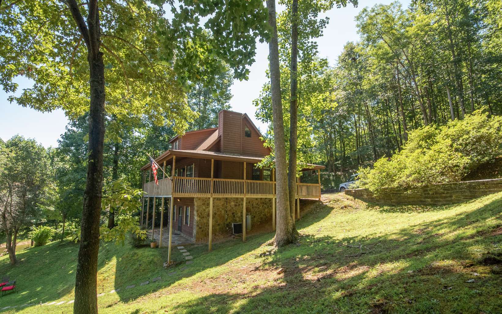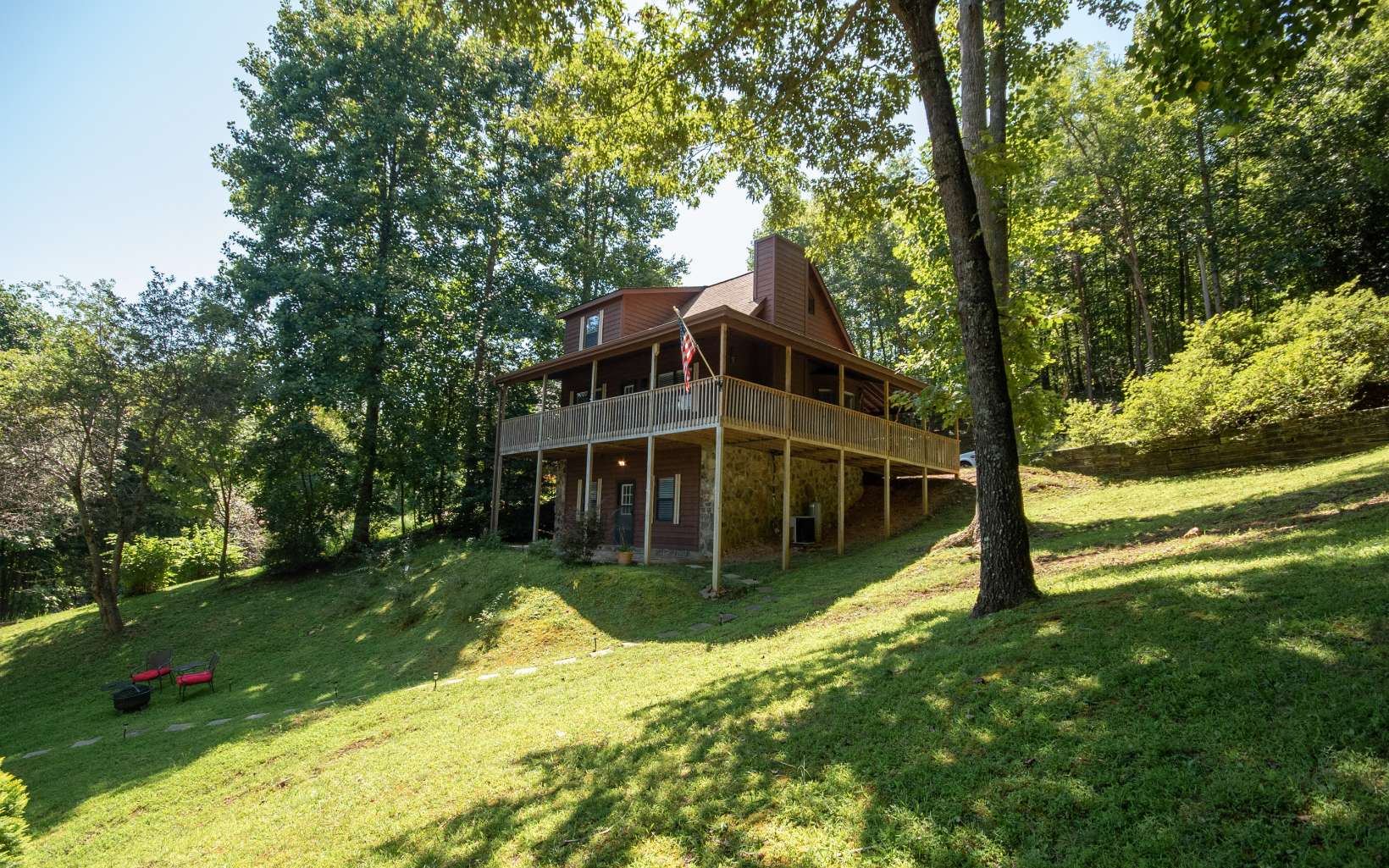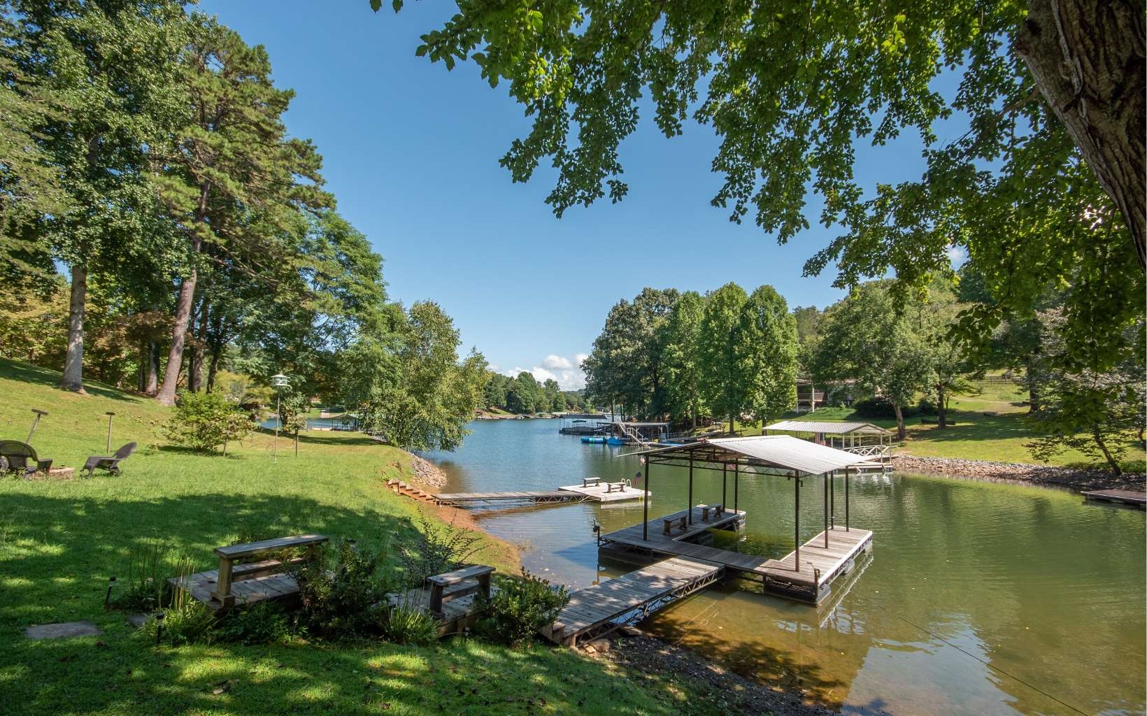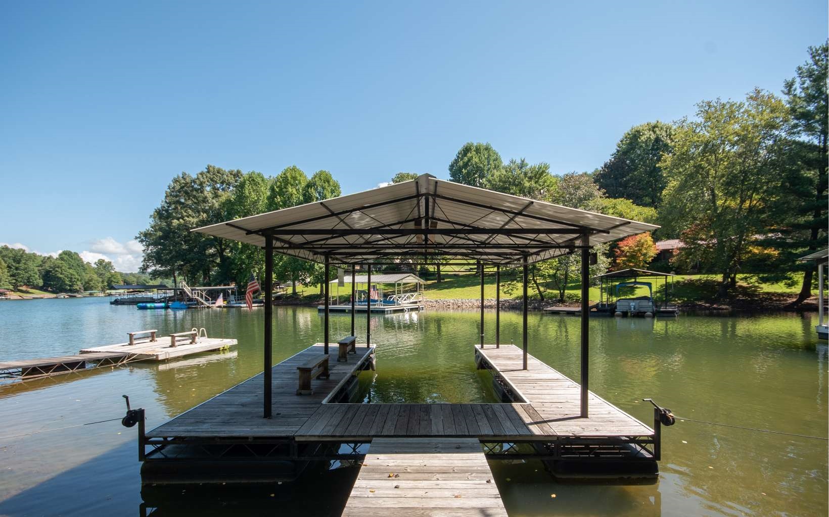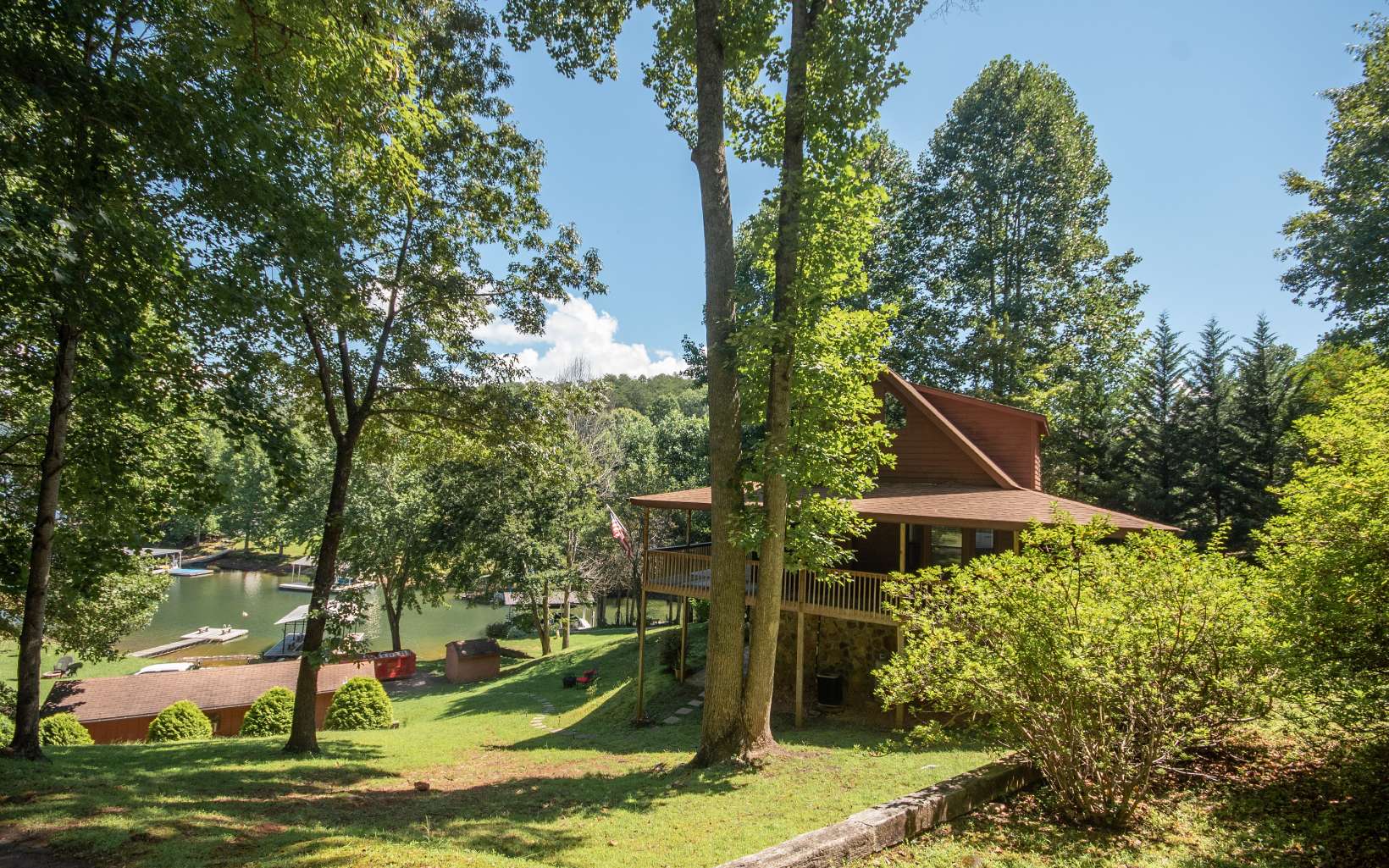 Motivated seller!! Two homes with gated entry. The main home offers open floor plan, 2 bedrooms, 2 bathrooms, great room with cathedral ceiling & exposed beams, stone gas log fireplace, living room, bunk room, and bathroom on lower level, large upper level, HUGE covered deck & lower level concrete patio, fire pit area, tall shade trees, wide paved asphalt driveway and a covered single slip boat dock. The second 369 sq/ft cabin has 1 bed room, 1 bathroom with living room & kitchen right on the lake, and just had renovations completed! PERFECT MOUNTAIN GETAWAY ON LAKE CHATUGE!!