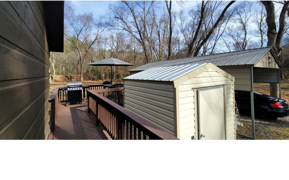 JUST REDUCED! Cute as a button! This well-kept 1BR /1BA Park Model sits on 0.88 UNRESTRICTED acres that offer anything you need. TURN KEY. Move-in ready! 100% usable land for your gardens, a park-like setting property. Clean inside and out home with nice living room w/gas log fireplace, full kitchen with all appliances. Washer/Dryer, loft sleeping for guests. Enjoy your walk in the woods, morning coffee on the wrap-around BBQ deck, relax at the large firepit with family and friends and listen to the rushing creek next door. End of road privacy. New 31Lx18W carport, new back deck. Nice shed/storage. Only minutes to Murphy NC downtown and Blue Ridge GA with all restaurants and outdoor attractions. Perfect for downsizing or turning it into your mountain vacation retreat! Life is good!