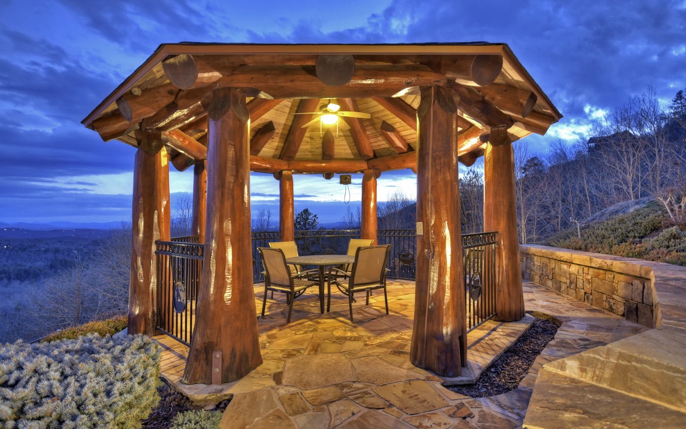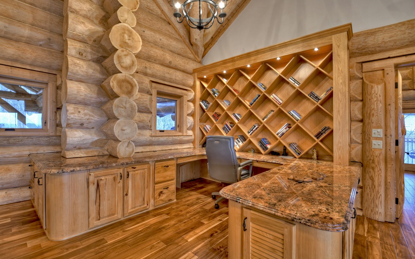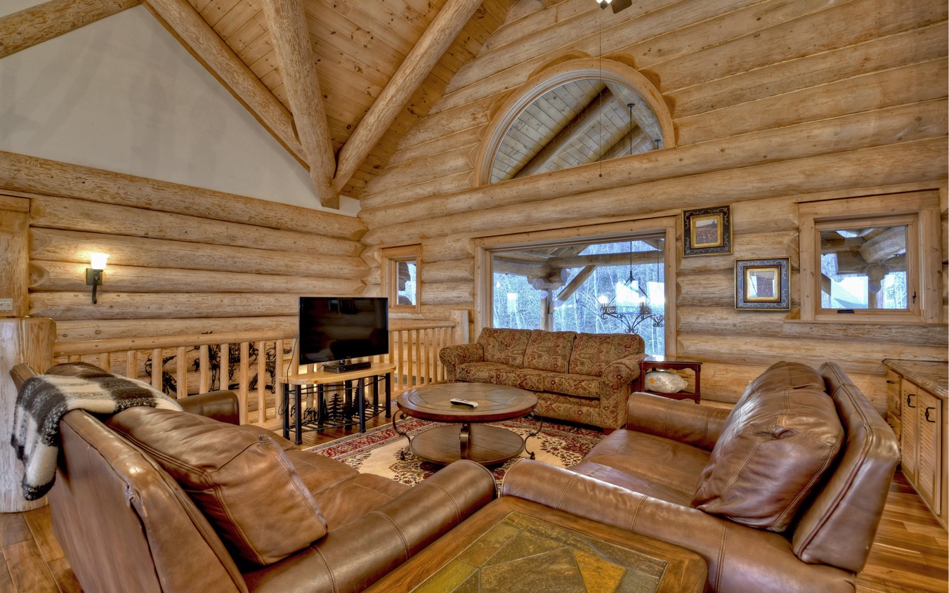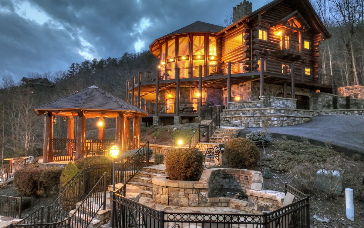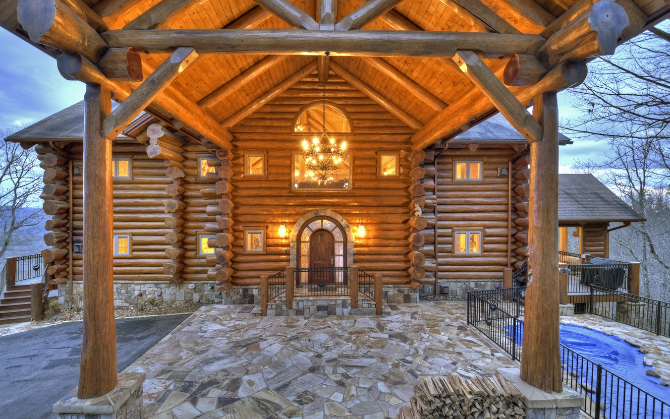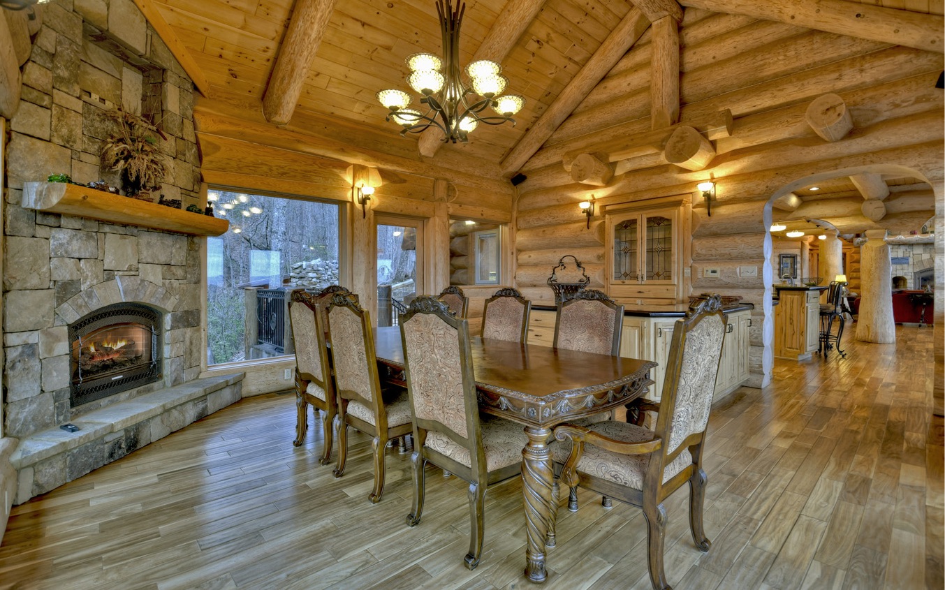 MAKE A STATEMENT IN THIS STUNNER.. British Columbian Cedar Log home is a masterpiece featuring every possible amenity.. Nearly Every Room stuns with a "view of the world" through these "walls of glass", 5bdrm suites, 4.5baths, home theatre, rec room w/ full kitchen & wet bar, fitness room, elevator shaft, executive office w/ gorgeous built-ins, large loft, intricate carvings throughout, massive stone fireplaces,baths feature detailed tile work, carved glass & fireplaces above jacuzzi tubs, 2 car garage, helicopter pad, sky high "massive timber" portico, in-ground "grande" hot tub & vanishing edge pool overlooking 180 degree 100 mile unobstructed mtn views!!! This Mountain Top Manor offers the life of the "rich & famous"-great for full time estate, mountain getaway, or corporate retreat & more..very private all paved access, and large tract offers ultimate privacy at top of mountain...Excellent rental history and fabulously furnished...showcase home!