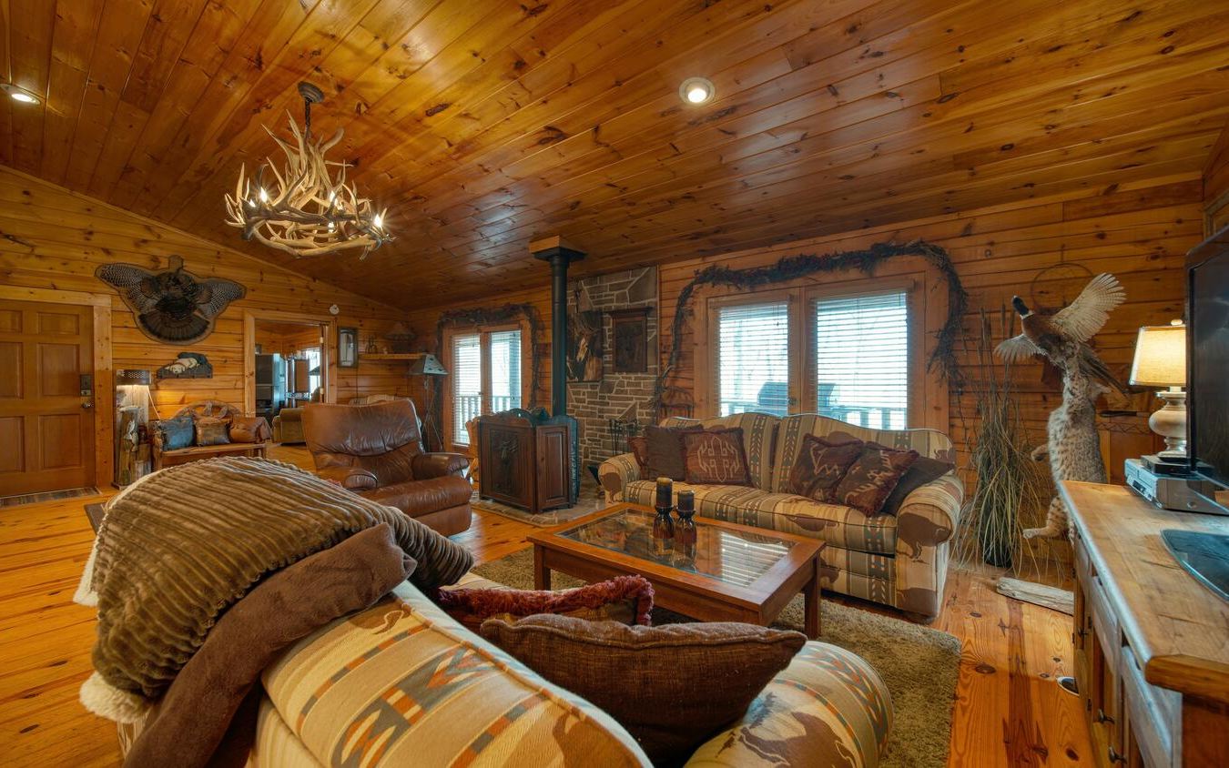Very private, true log cabin situated on 11.43 acres. This 2 bedroom 2 bath home has cathedral tongue and groove ceilings throughout. Beautiful pine floors, all wood interior and wood burning stove. Open kitchen living room concept. Master bath has tiled floors with large handicap shower. Master bedroom and laundry are on the main floor allowing for one floor living. Wide porches with open beams and large cut trees for ceiling support. Enjoy the mountains of Western NC and abundance of wildlife. There is a finished bonus room in the basement, perfect for additional sleeping quarters or media room. Two car post and beam carport with a ceiling height to store an RV. This cabin is conveniently located to Hayesville NC, Hiawassee GA, Lake Chatuge, shopping, golf, dinning and so much more.
