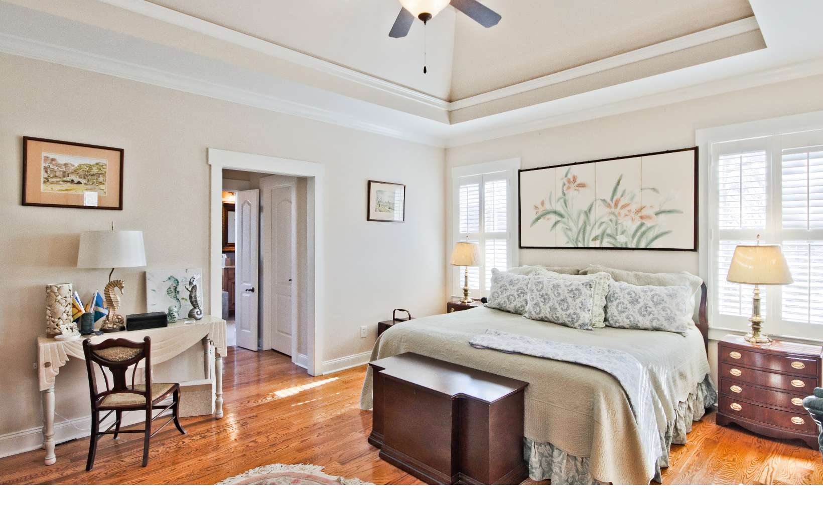 Beautiful executive home with mountain views close to the front gate of Bent Tree. Built in 2002, this home is an entertainer's delight. From multiple gathering rooms to a Butler's Pantry, this home is meant for parties and family gatherings. The main level features a formal Dining Room, a Great Room with built-in bookshelves and a gas log fireplace, a sun room, a well appointed kitchen with a Butler's Pantry, an additional pantry, and a Breakfast Area, a Primary Suite with a sitting room and a spacious bath with his-and-hers vanities and his-and-hers closets, a guest bedroom, and two full guest bathrooms. Also on the main floor is the two-car side-facing garage that is connected to the house right at the kitchen and a laundry room with a utility sink. The terrace level features two sitting areas, a double sided gas log fireplace, a bar, a dining area, a glass enclosed sun room, a guest suite complete with a full bath, a large cedar closet and two storage rooms. There is also a golf cart garage on the terrace level complete with an electric garage door.