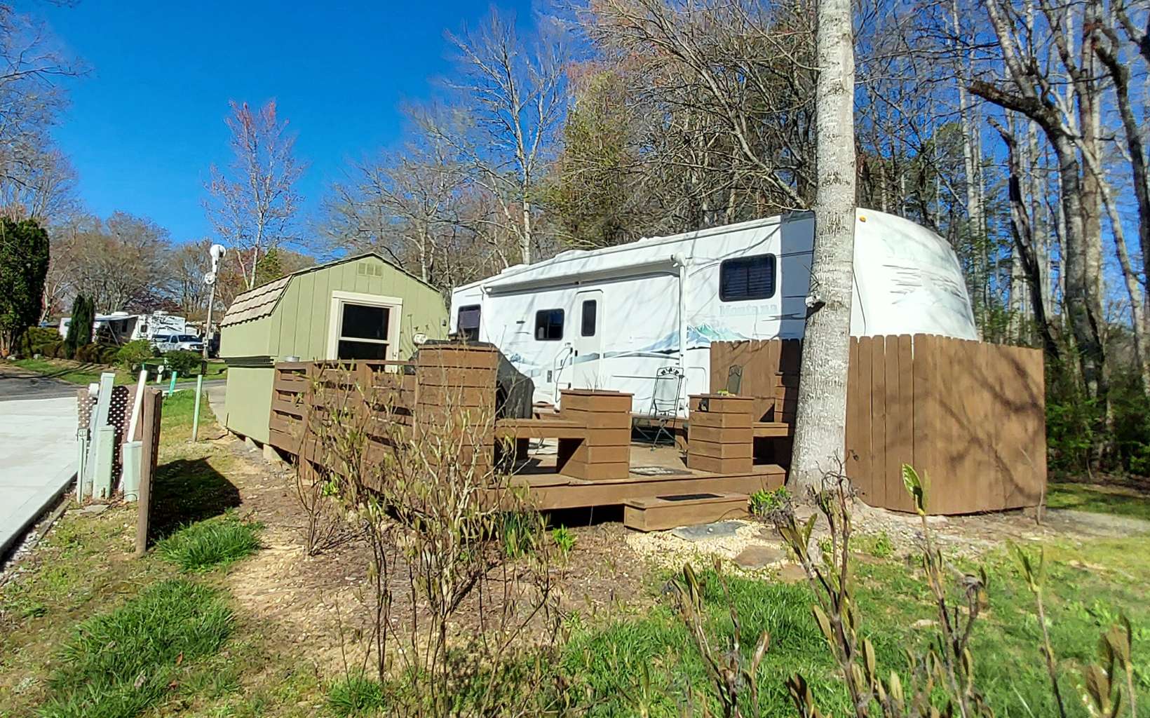 Ideal for Investor or seasonal home in the hills - Montana 5th wheel RV, paved/double parking pad, outbuilding on corner creek lot ideal if in a down-sizing phase, or investment minded soul wanting to manage their own equity. Most RV communities do no allow nitely or mid-term rentals, this is an exclusive opportunity. Sold subject to current rental lease. 3+ yrs of rental history available - fully furnished. New appliances, heater & water heater. Owner to consider financing w/ 40% down - view www.brooksideRV.com - multiple units available.