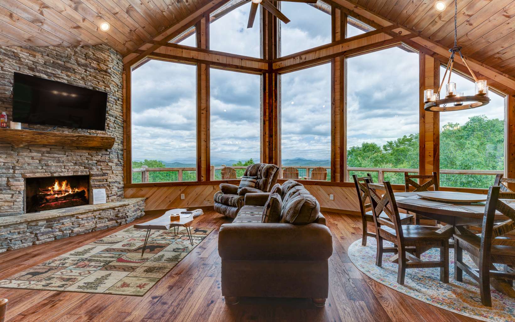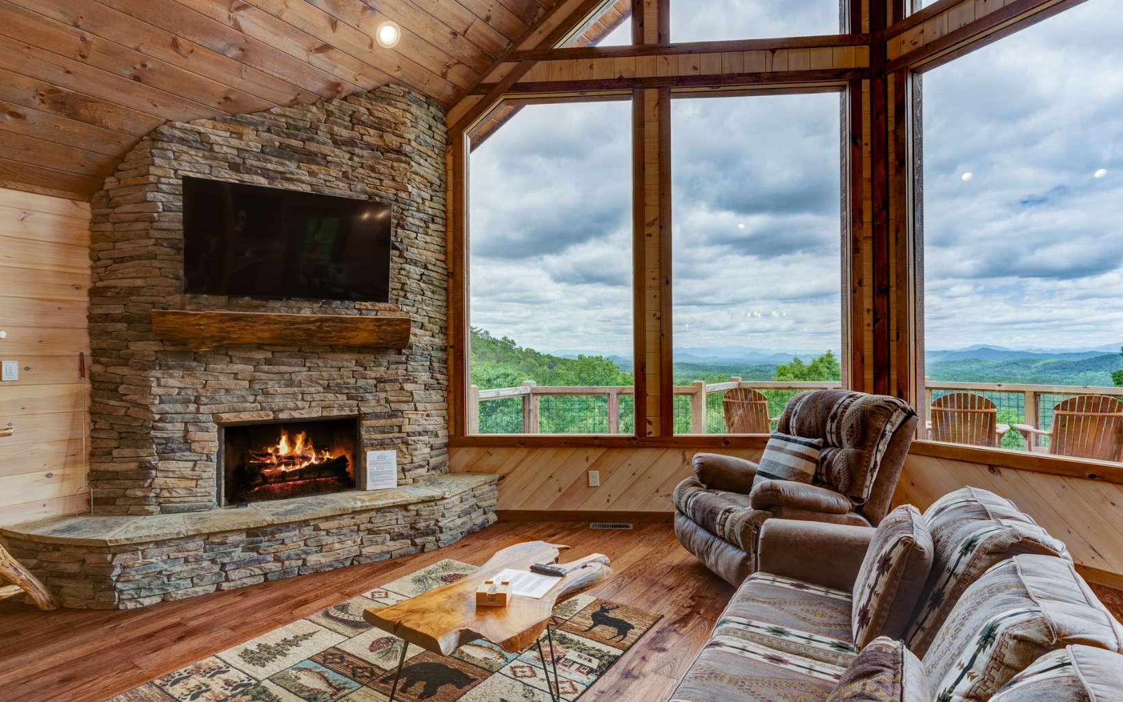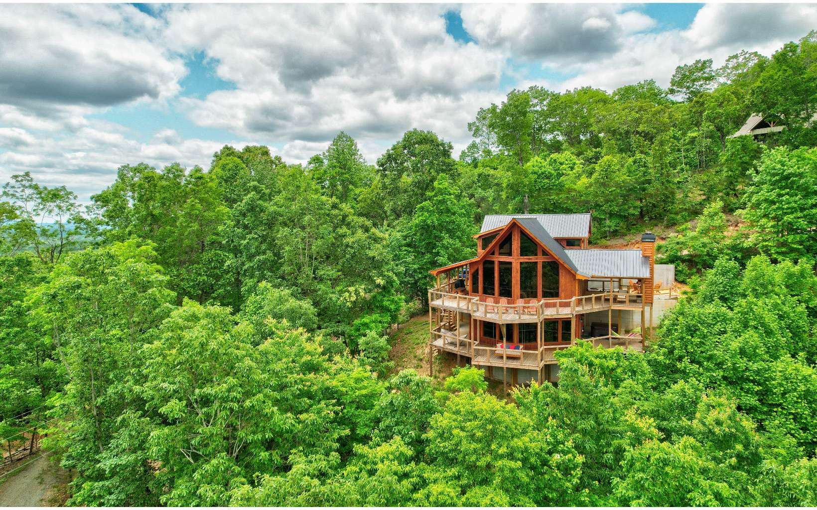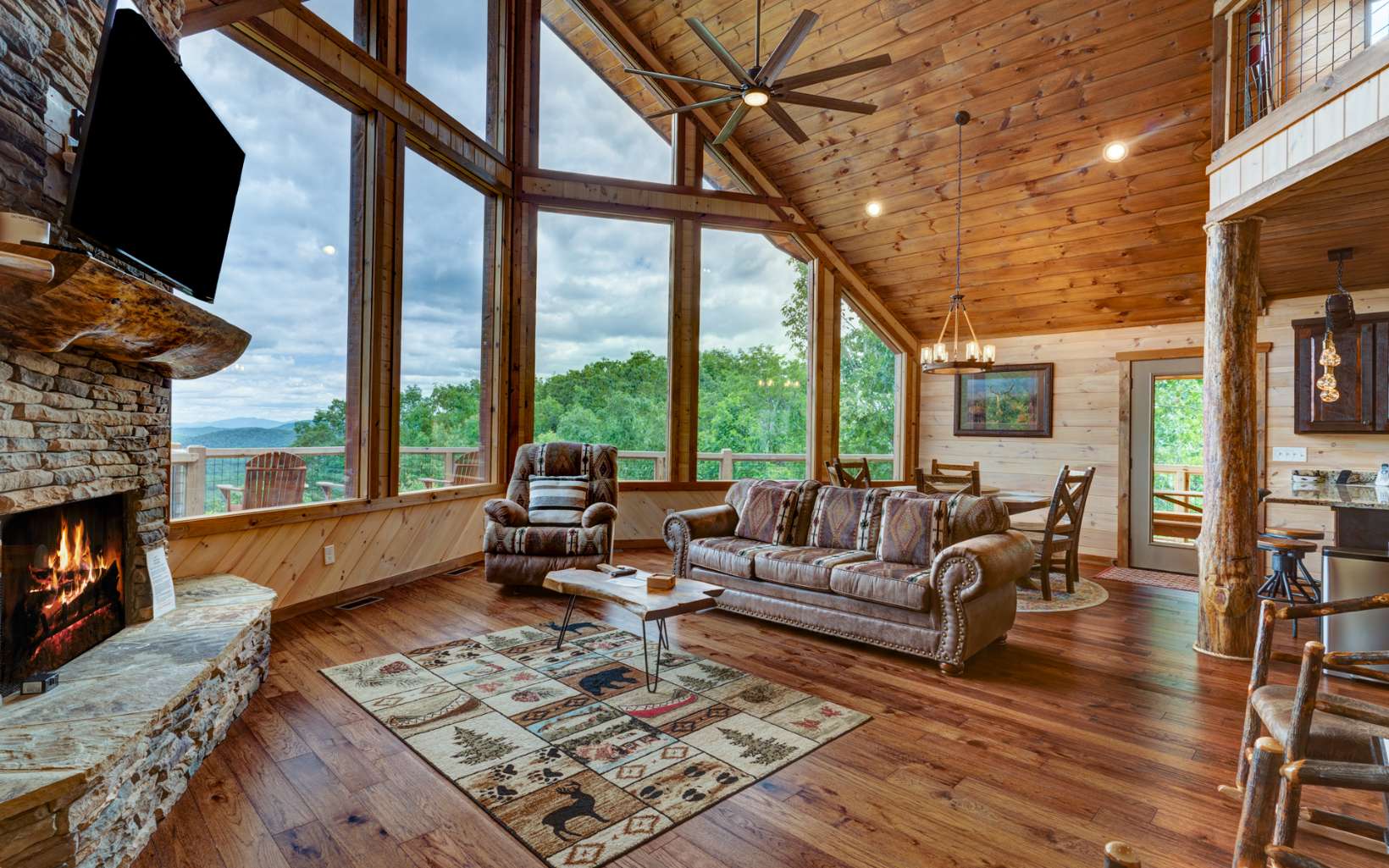 Exquisite Cabin with Breathtaking Views on 2 acres. Built in 2022 this cabin has 2500 sq ft of living space in addition to extensive decks( 2500 sq ft). The cabin is 3 bedrooms, 3 baths with a 2 car portico. Some of the many upgrades/features of this home include tankless water heater, foam insulation, 3 fireplaces, aged hickory floors, solid pine walls and ceilings, water conditioner, Bali custom shades, volume ceilings, circle-sawn pine cabinets with granite counter tops, LG stainless steel appliances, led lighting throughout and much more! The cabin has an abundance of windows for natural lighting and to capture the beauty of the nature that surrounds the property. Spacious bedrooms are on each level for additional privacy. The entertainment area in the lower level has an additional wet area, perfect for family/guests to enjoy. This property is turn key on a rental program. The furnishings available on separate bill of sale. Property is minutes to Blue Ridge, NC and all the activities the area offers. A feature sheet has been prepared describing some of the many upgrades of this incredible property built by a top local builder.