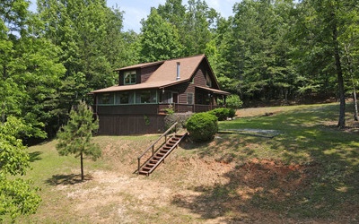 Private mountain retreat on 6 acres set up for you to personalize and make your full-time home, mountain getaway, or short-term rental. The main house has an open-concept kitchen, dining and living room. The current setup has the dining in the sunroom but can certainly be arranged to have the dining table near the kitchen and breakfast bar. 2 bedrooms, laundry, and utility room are on the first floor, and a full bath. Upstairs is a loft with a half bath. Barn with 2 stalls, workshop, and studio apartment upstair with kitchen and full bath. Seasonal mountain views with the potential for year-round with some tree trimming. Plenty of room for a garden, garage, chicken coop, or whatever makes you happy. Come check out this Morganton property and see if this is the one for you!