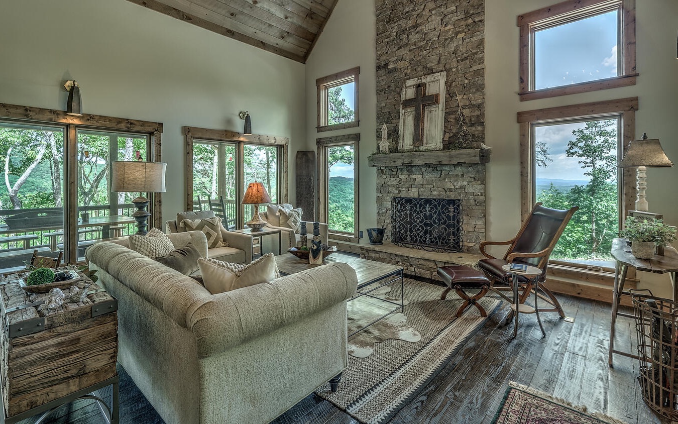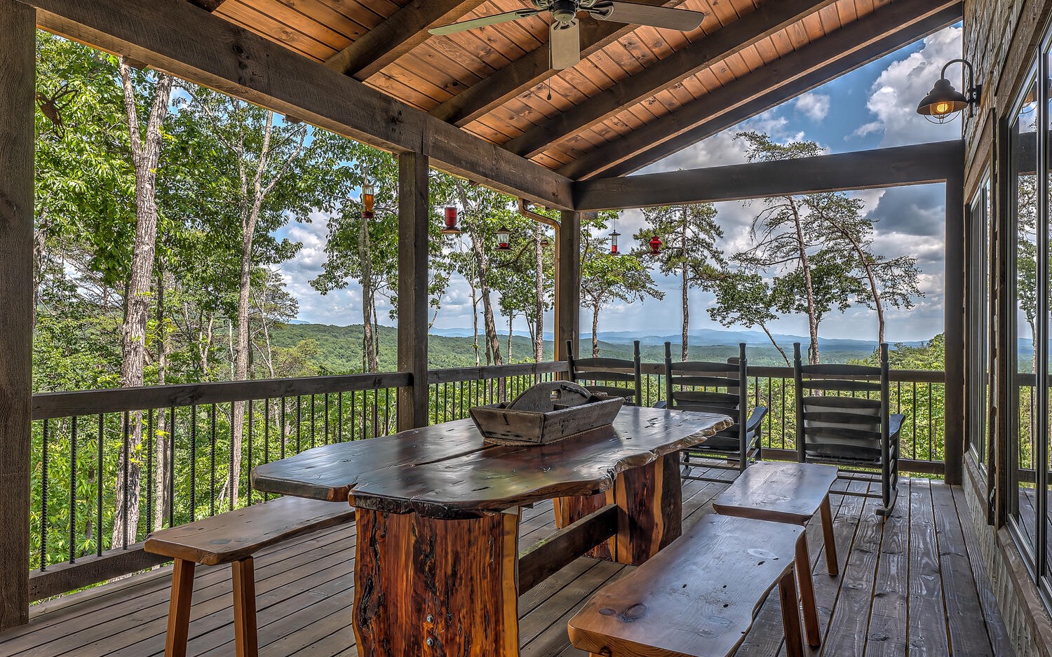 You know you are someplace special as soon as you enter the gates of Utana Bluffs! This Utana Bluffs home has breathtaking MOUNTAIN VIEWS & PRIVACY! Moss Creek Modern Rustic Home using natural elements w/hand hewn wood, live edge, poplar bark, reclaimed metal, barnwood, antiqued wood floors & stone; exquisite craftsmanship! Soaring cathedral ceilings, 3 fireplaces, open concept, well appointed kitchen & dining with a VIEW! 3 levels of living provide plenty of room for family/friends. Enjoy the beautiful layered views from the 3 covered porches, exterior fireplace, terrace patio & fire pit area. (See V-Tour for 100+ pics) Located in UTANA BLUFFS, most exclusive & highly sought after community in North GA offering social club, hiking trails, fitness, tennis, trout pond, waterfalls & adjoins 1000+ acres of Chattahoochee National Forest. (Visit utanabluffs.com) No STR'S