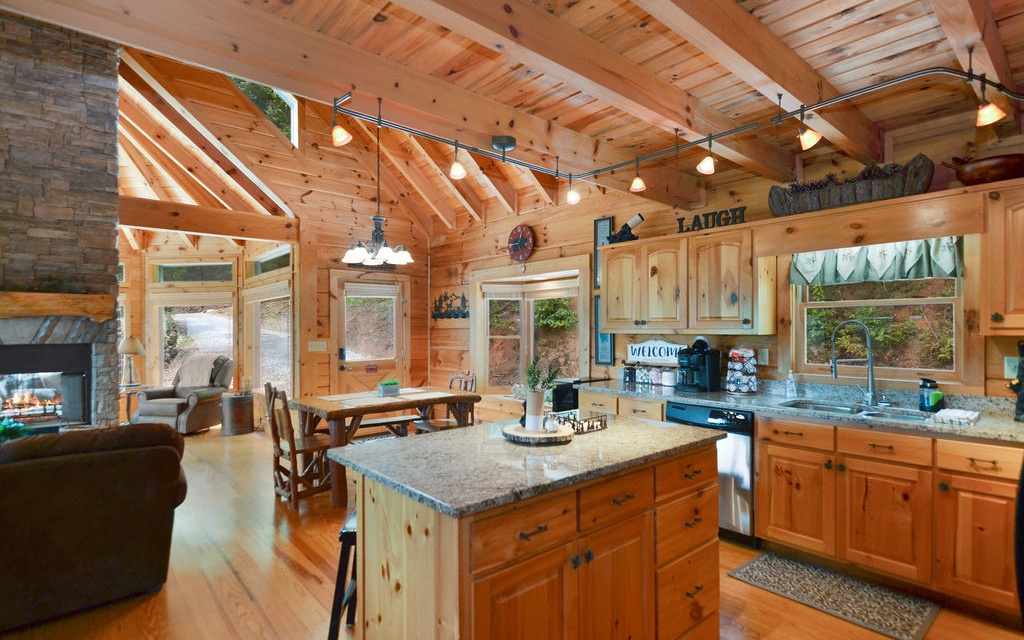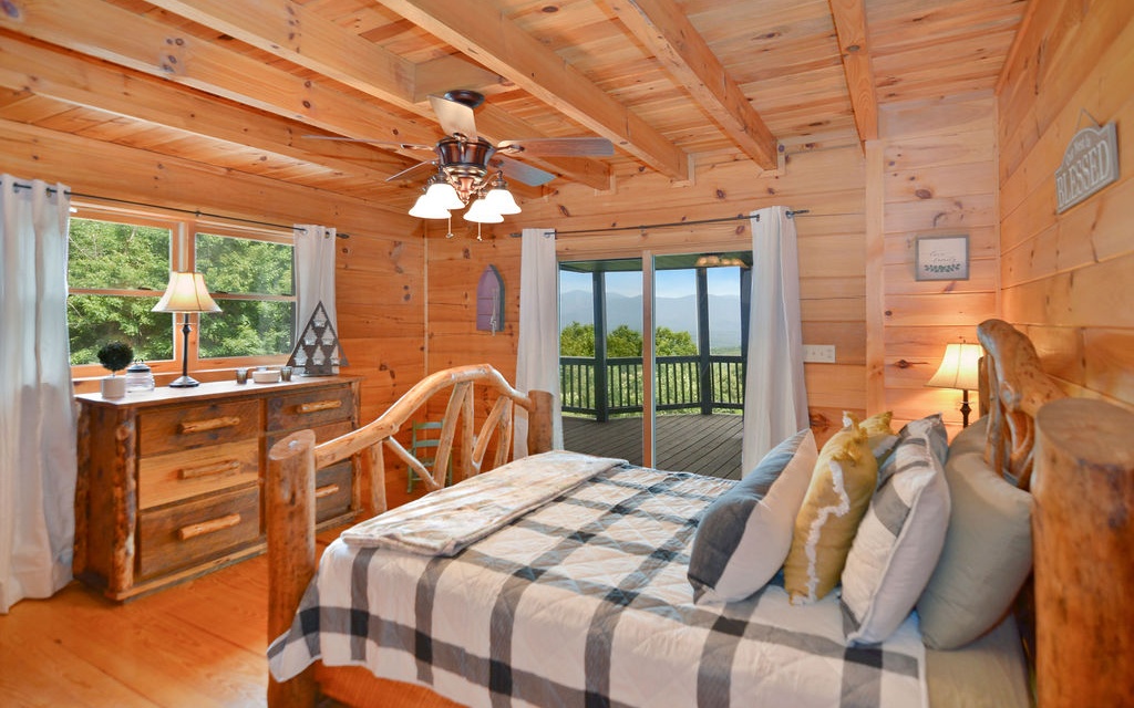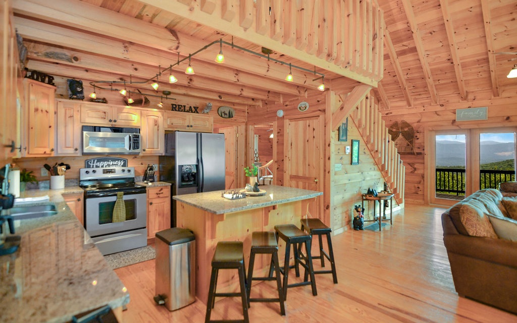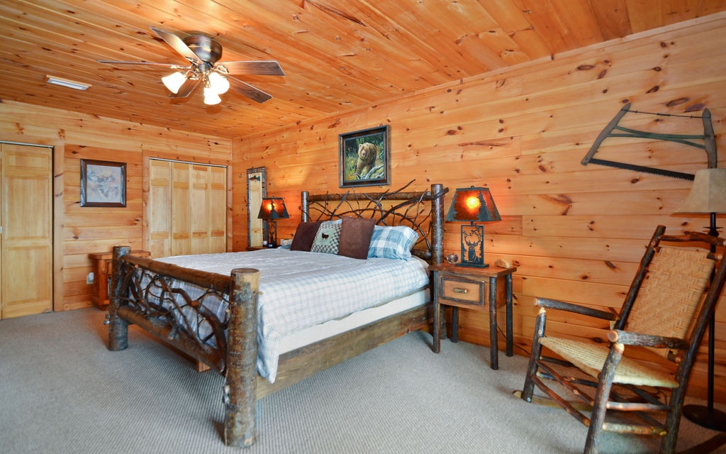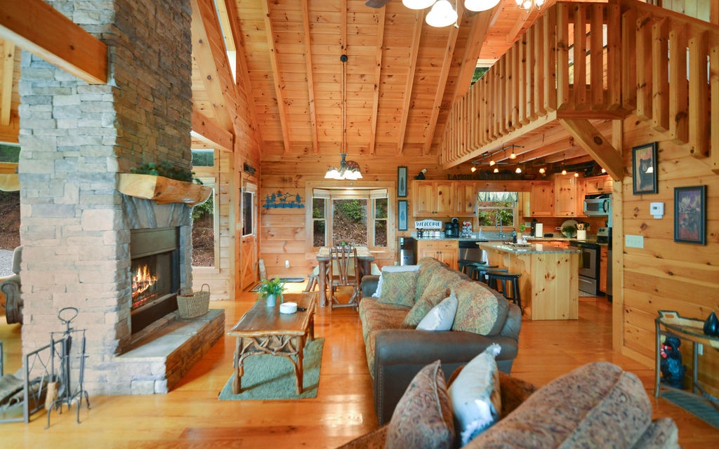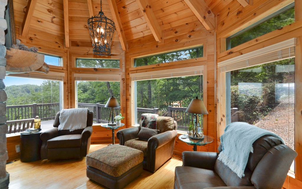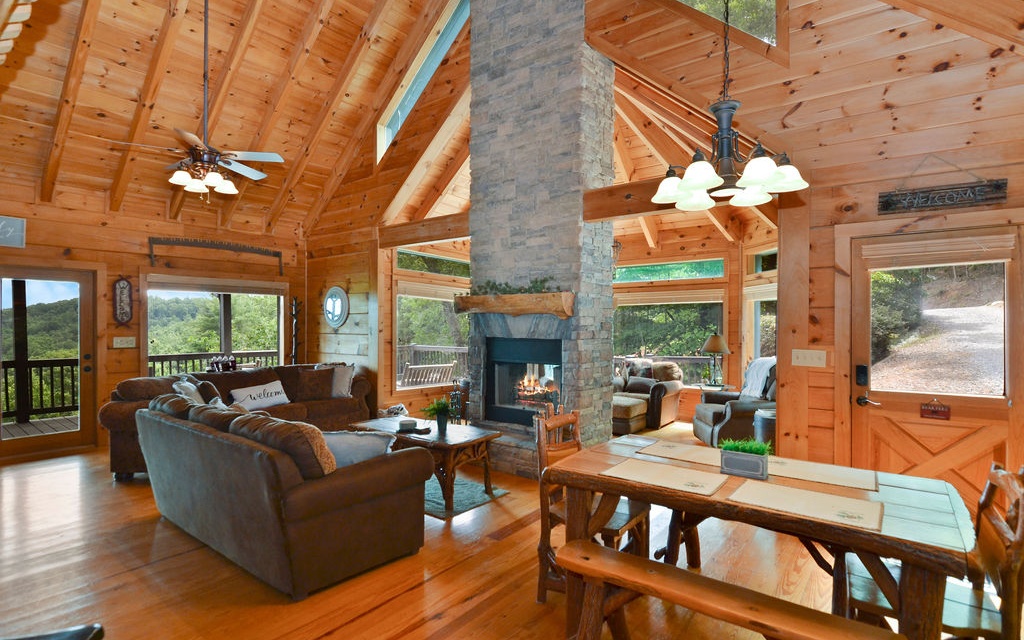 Truly “Above it All” with PANORAMIC views that will absolutely take your breath away! This upgraded/updated FULLY FURNISHED 3BR/3BA log mountain home will satisfy all your wants & needs. WRAP AROUND DECKS! Master Suite is located upstairs with majestic views while soaking in the jetted tub. Warm and cozy double sided fireplace in the living room. Guest bedroom located on main with full bathroom and access to the wrap around deck and hot tub. Finished basement has the 3rd bedroom along with a separate living room, full bathroom, and lower deck--- perfect for multiple families. Perfectly situated right between the bustling historic downtowns of Blue Ridge & Ellijay & just over an hour from the northern ATL burbs, it doesn’t get much better. Community borders 36,000 acres of Cohutta National Forest for direct access to the Benton MacKaye Trail. Soak in the views from the hot tub!