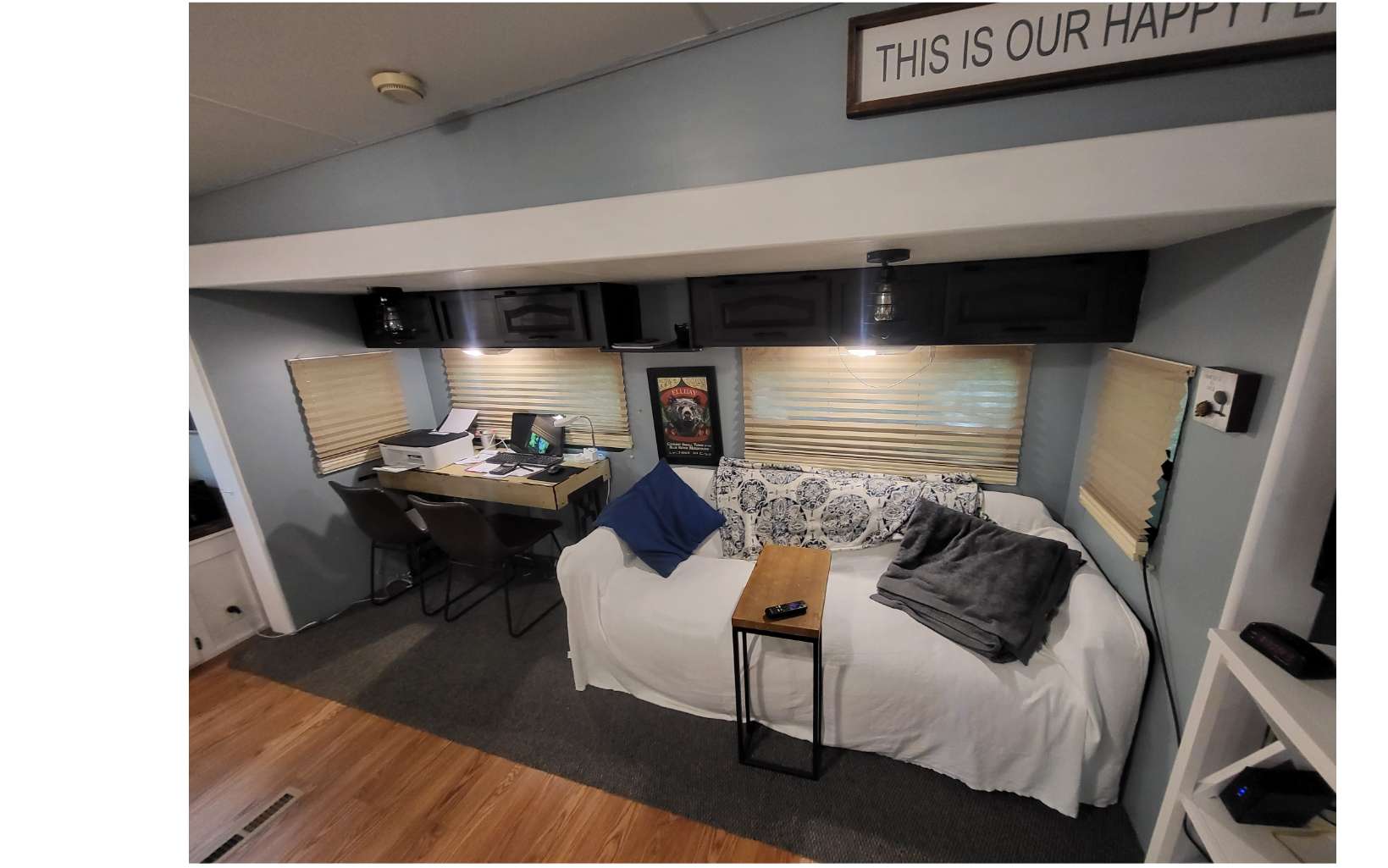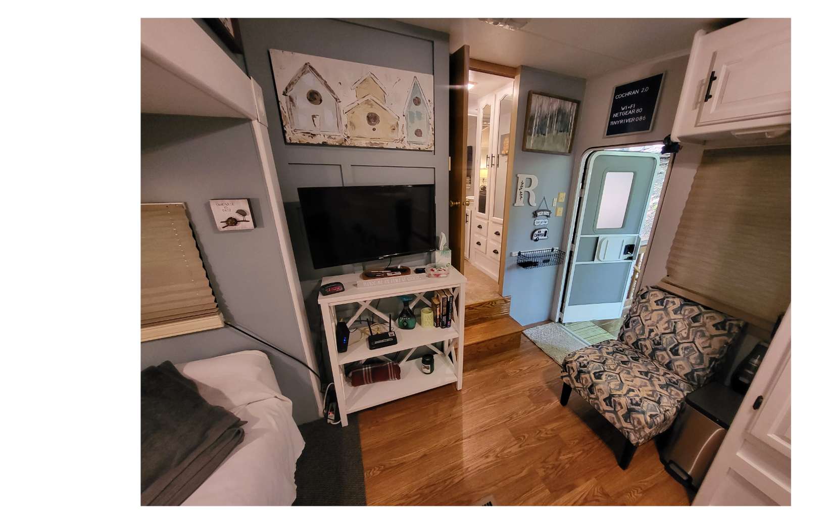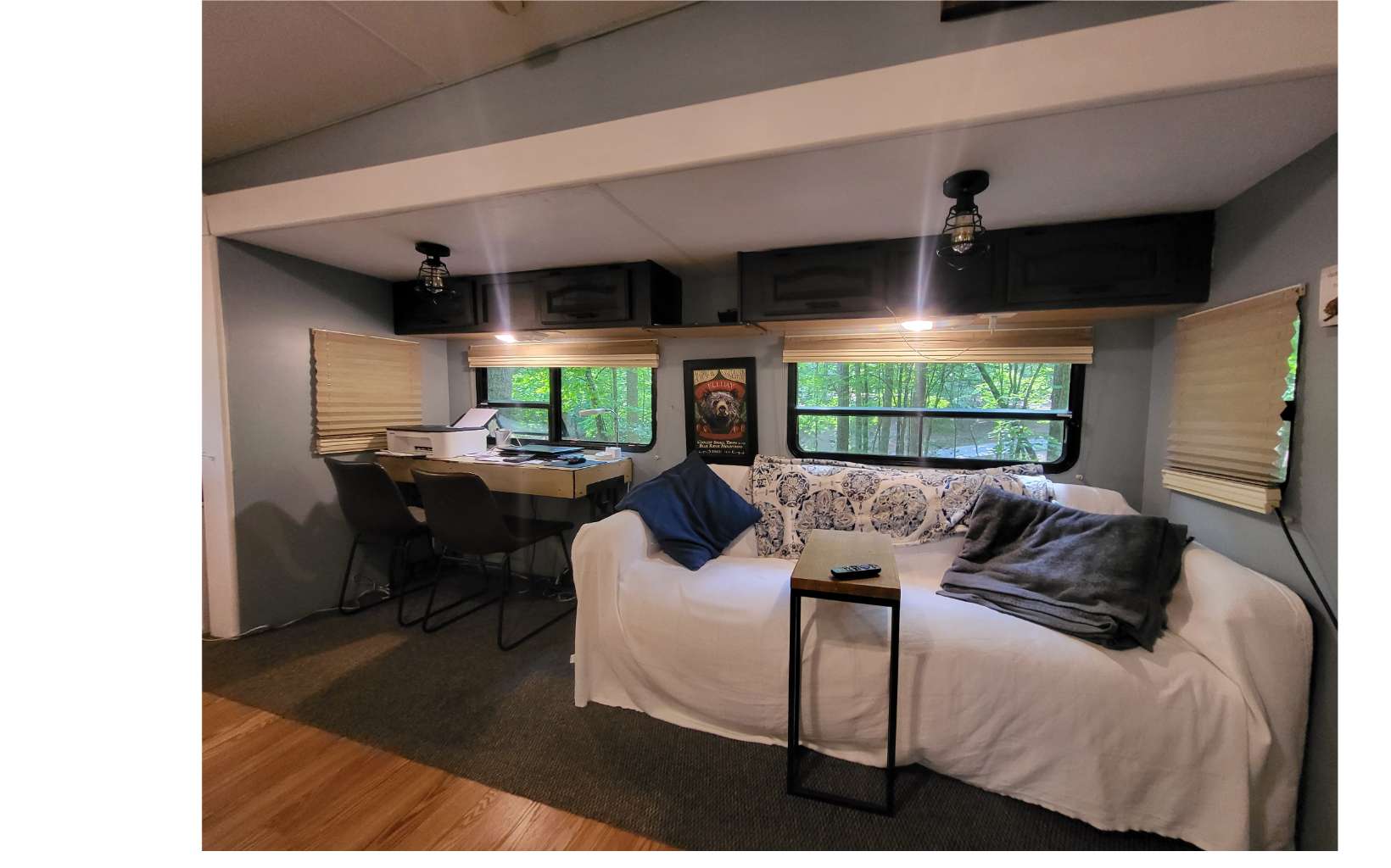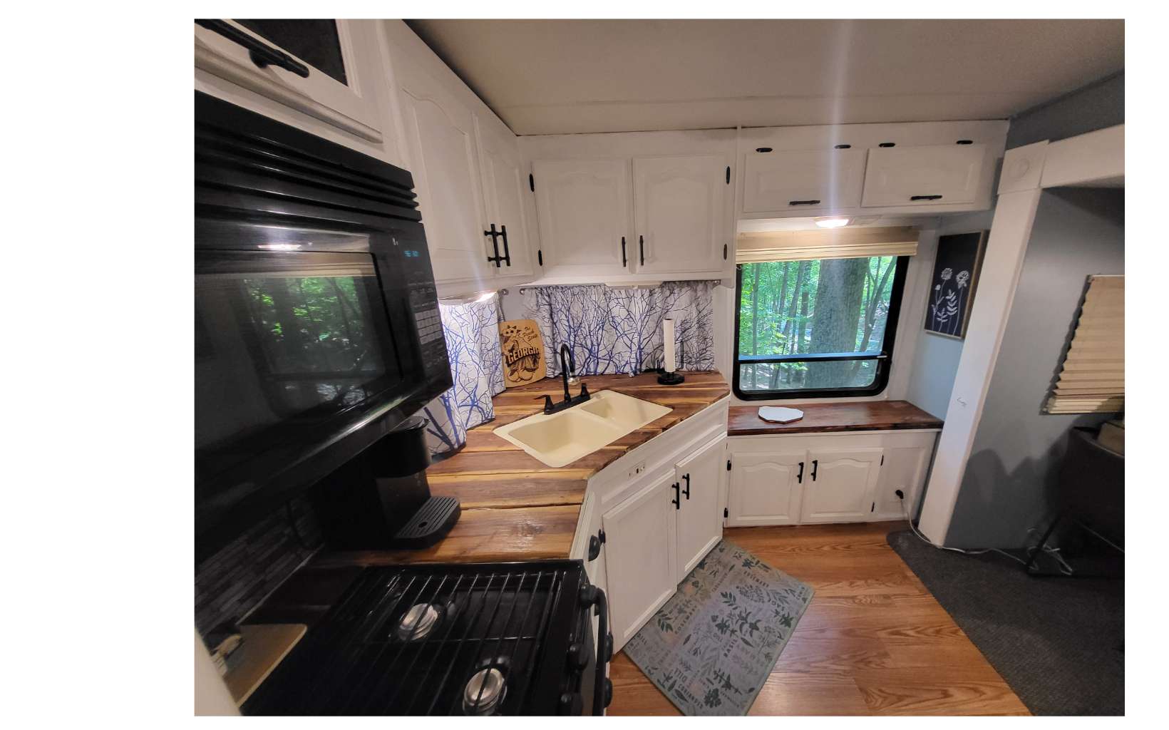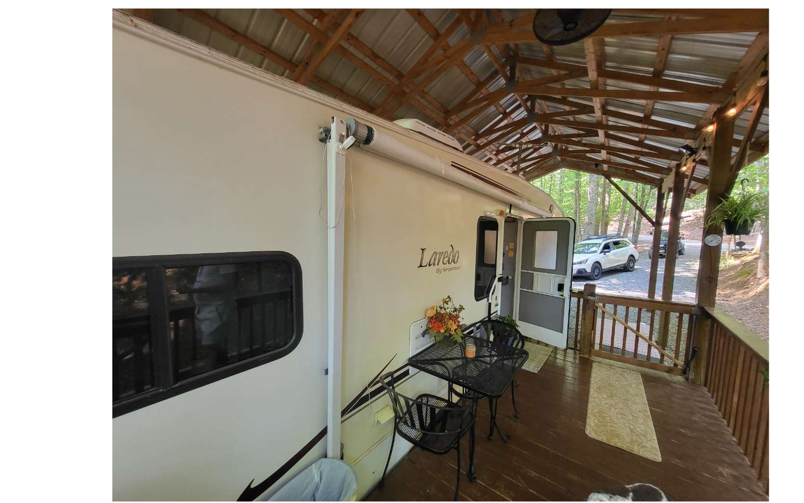 LOOKING FOR your serenity in the Mtns? This "Treehouse in the GA Mountains" is ready to go - ready for you to move right in! Enjoy time away from the hustle & bustle of the city and relax on the deck under the large roof over built in 2018 clean and comfortable w/ bdrm (queen), full bathroom, full kitchen. Warm, Inviting, Spacious, Open, Covered decking for enjoying the beautiful surroundings of this unique spot. Overlook the greenspace behind you with tons of wildlife, fire pit, built in grill on a stone patio, large deck, privacy fence. All furniture stays, so this is turn key! The yard is maintenance free w/ stone and mulch. Bonus: Storage building. Smoke-free. Extra parking. Very private. Walk to the Riverside Pool + Dog Park & foot bridge crossing access to Fishtrap Park and its picnic pavilions and Kids Play areas. All resort amenities available including Rec Center with indoor/outdoor 365 pool, game room, exercise room, putt putt, pickleball, tennis, basketball, 2 outside pools, small fishing lake, 5 parks on the river, walking trail & more.