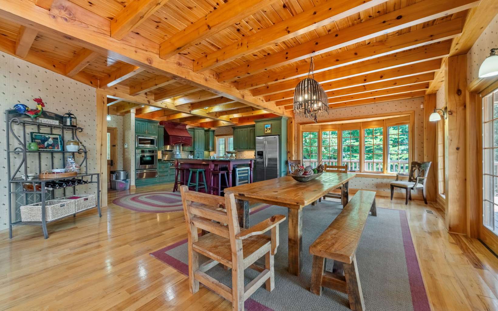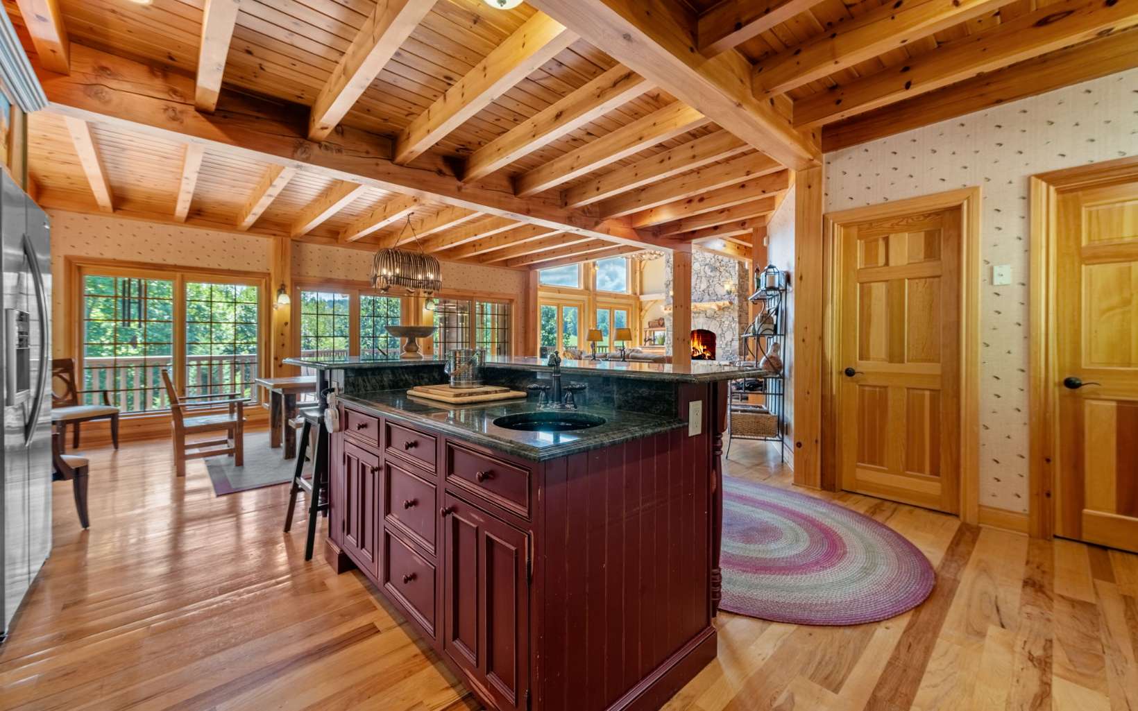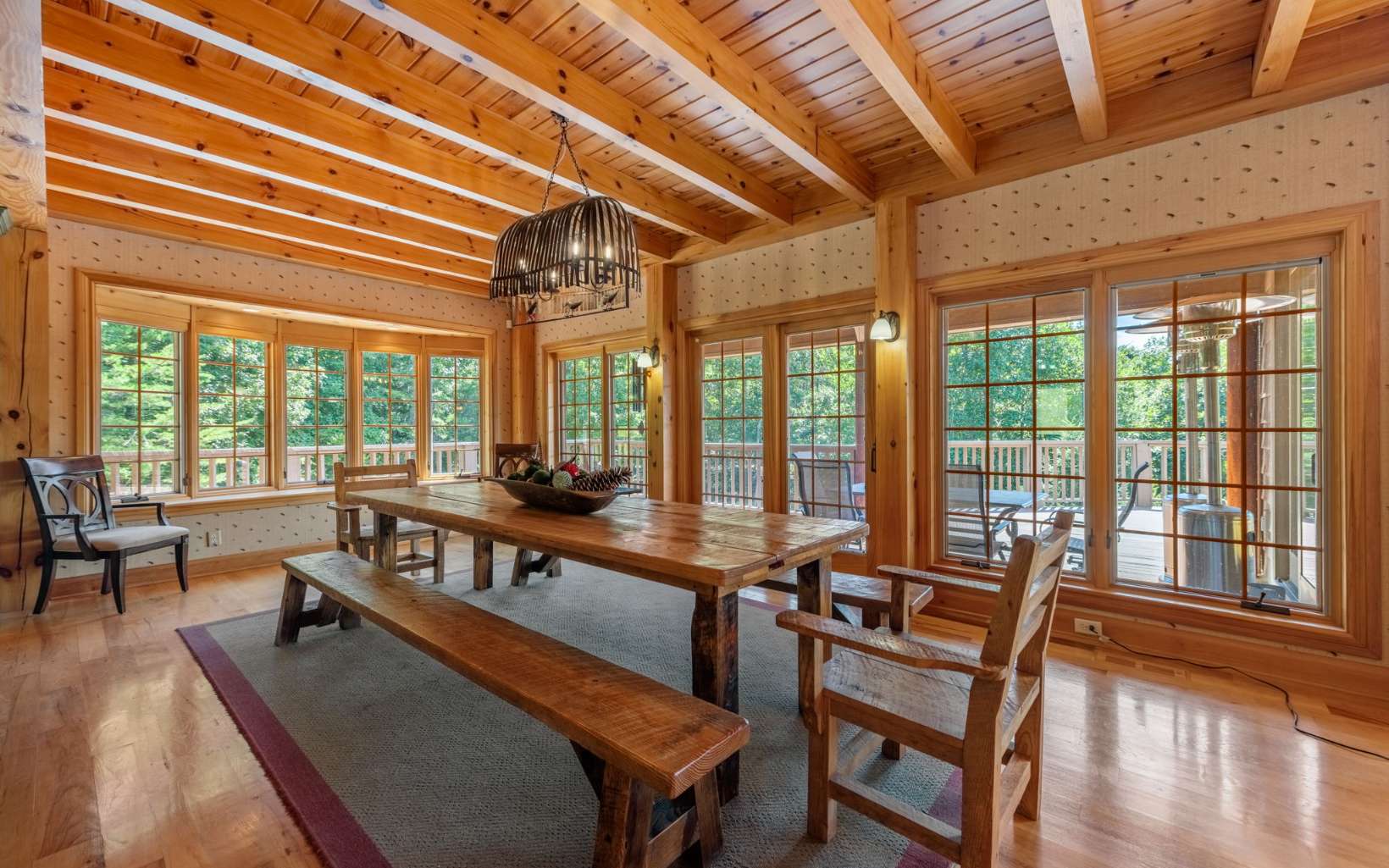 See Attached Full Description: Creekside Lodge is a custom built timber frame masterpiece in the mountains and 630' trout stream and built in sauna. LR w/ massive stack stone FP (gas), 60' cathedral ceilings, wall of windows, & mtn laurel railing. Oversized DR w/ access to back deck w/ long-range mtn views. Chef’s farmhouse style kitchen w/ 5-burner gas stove, prep island w/ sink, S/S apps, granite c-tops, & pantry, barn wood table that seats 16. 2 laundry rms (main & upstairs). Huge primary w/ deck access, gas FP, walk-in closet, 2 massive owner's suites (main/upstairs) w/ step-in double headed shower, jetted tub, walk-in closet, & dual stone sink vanity w/ added storage. Vaulted loft w/ seating area, 2 BRs, & full BA upstairs. 2,330 sqft terrace level: full kitchen w/ S/S apps & granite c-tops, LR w/ stone pass-through FP (gas), deck access, game rm with 8' pool table, foosball, slot machine, dart board, BR, full BA with claw foot soaking tub, 2nd full BA w/ trough sink, step-in shower, & sauna, plus single car garage access w/custom cabinets and add'l storage room. Gorgeous property w/ wide creek, fruit trees, outdoor FP w/ seating area, walking paths, over 2K sqft of multiple full-width decks, storage tower has add'l storage for yard tools w/ deck, generous parking. Home comes furnished, w/golf cart, & yard equip. Work from home w/Mesh WiFi wide range, 8 security camera w/motion, intruder alert, smoke, fire, and carbon monoxide detection, view cameras on PC, Phone or TV.