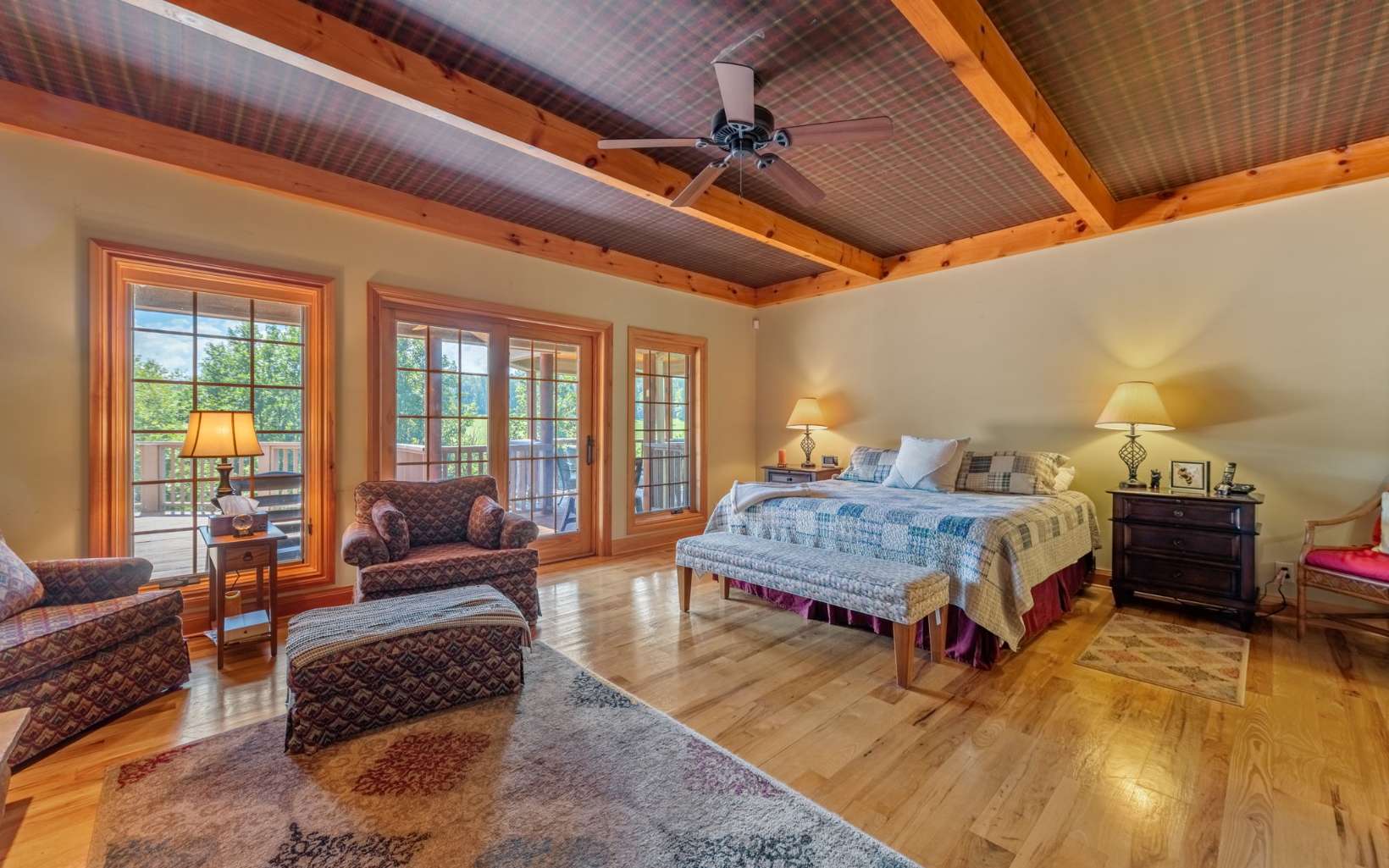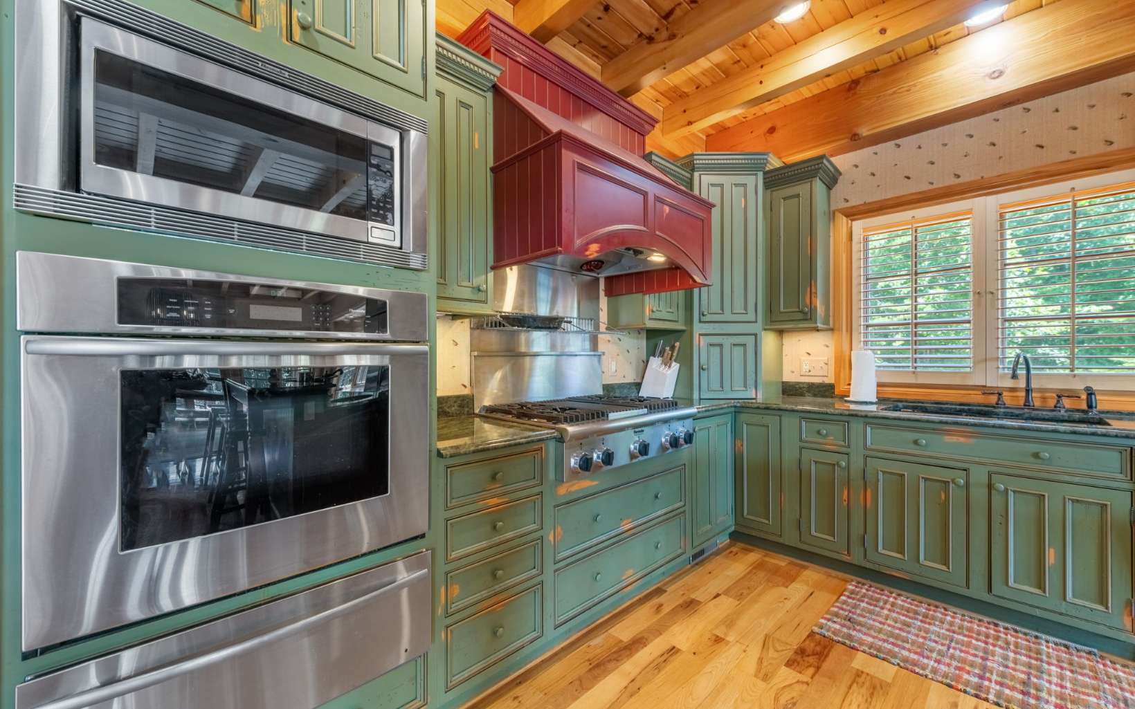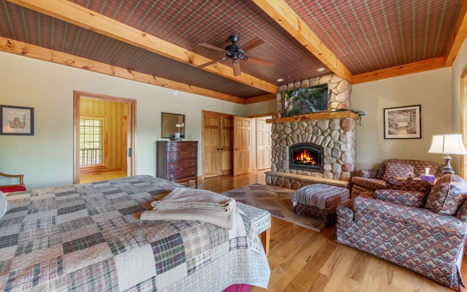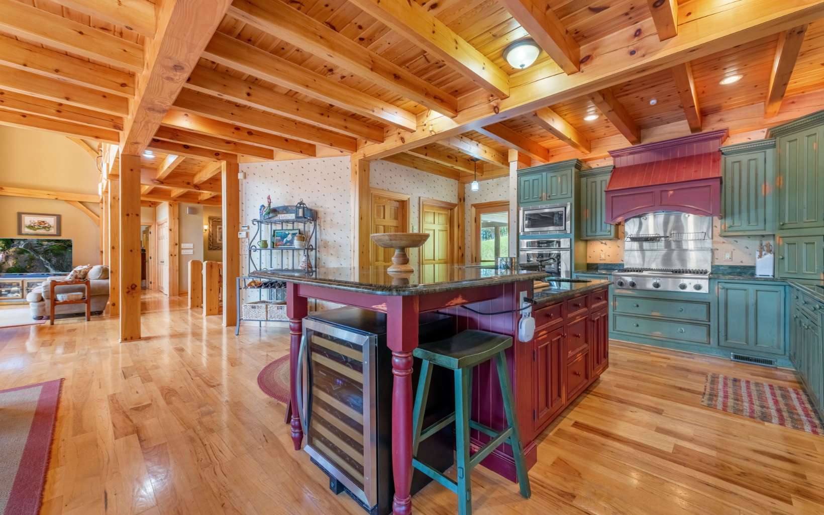 See Attached Full Description: Creekside Lodge is a custom built timber frame masterpiece in the mountains and 630' trout stream and built in sauna. LR w/ massive stack stone FP (gas), 60' cathedral ceilings, wall of windows, & mtn laurel railing. Oversized DR w/ access to back deck w/ long-range mtn views. Chef’s farmhouse style kitchen w/ 5-burner gas stove, prep island w/ sink, S/S apps, granite c-tops, & pantry, barn wood table that seats 16. 2 laundry rms (main & upstairs). Huge primary w/ deck access, gas FP, walk-in closet, 2 massive owner's suites (main/upstairs) w/ step-in double headed shower, jetted tub, walk-in closet, & dual stone sink vanity w/ added storage. Vaulted loft w/ seating area, 2 BRs, & full BA upstairs. 2,330 sqft terrace level: full kitchen w/ S/S apps & granite c-tops, LR w/ stone pass-through FP (gas), deck access, game rm with 8' pool table, foosball, slot machine, dart board, BR, full BA with claw foot soaking tub, 2nd full BA w/ trough sink, step-in shower, & sauna, plus single car garage access w/custom cabinets and add'l storage room. Gorgeous property w/ wide creek, fruit trees, outdoor FP w/ seating area, walking paths, over 2K sqft of multiple full-width decks, storage tower has add'l storage for yard tools w/ deck, generous parking. Home comes furnished, w/golf cart, & yard equip. Work from home w/Mesh WiFi wide range, 8 security camera w/motion, intruder alert, smoke, fire, and carbon monoxide detection, view cameras on PC, Phone or TV.