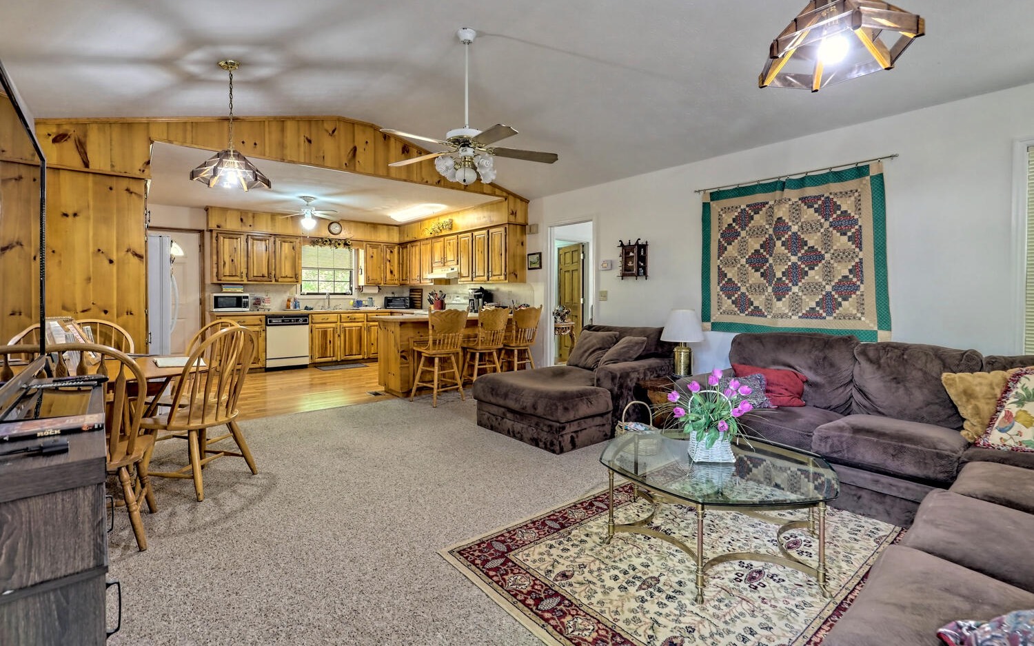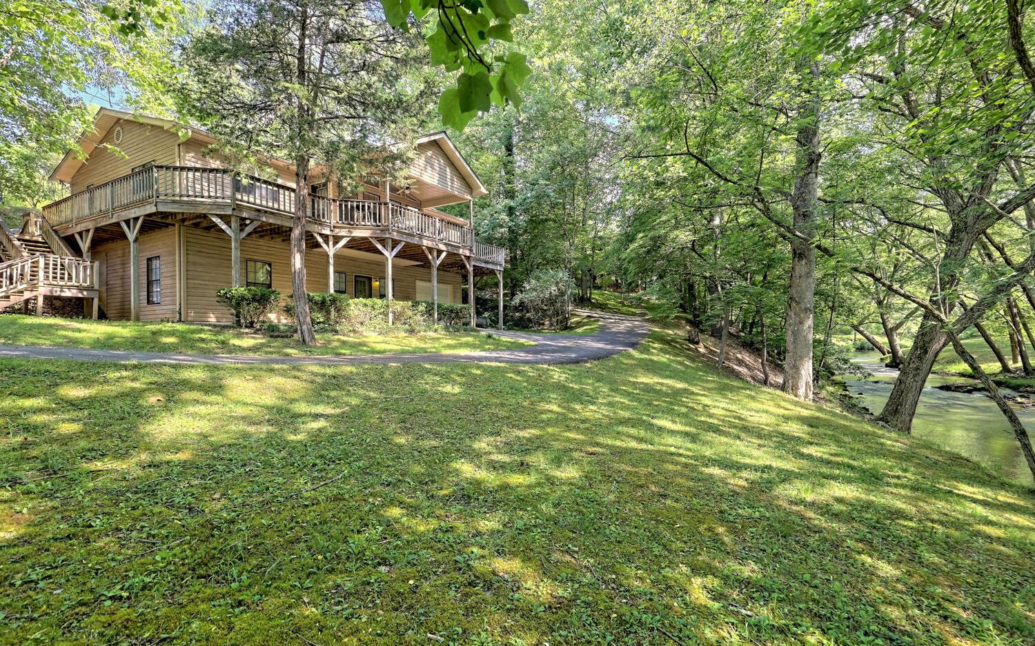 Looking for A small slice of heaven on the creek? This is the spot! This 3BR/3BA home sits on .55 +/- ac lot. This well-maintained home boasts an open kitchen to living room space. 2 bedrooms a 2 bathroom on one level. Large wrap around deck with a small, covered section to sit back and enjoy the sounds of the rushing creek. Lower-level features 1 bedroom, bathroom, large living area, utility room, laundry area, and one car garage. Very well-maintained home, private location, and paved wrap around driveway. Perfect little get away home!