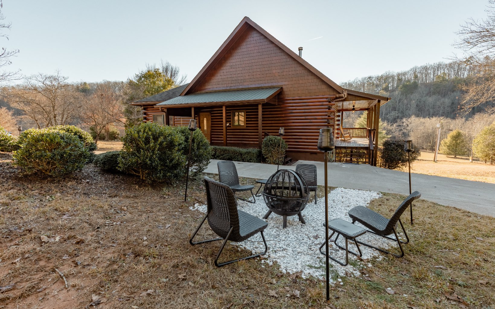 Lovely true log cabin in a pastoral setting just minutes from downtown Mineral Bluff, McCaysville and Blue Ridge. SOLD FURNISHED! This classic 3BR 2BA cabin is instantly welcoming. Inside you'll find an ample kitchen w/ granite countertops and all new SS appliances, great room, large main bedroom with its own porch access & en suite bath, 2 full size additional bedrooms with closets. You'll love all of the covered rocking chair porches-just perfect for a cup of morning coffee. 2 Car garage and separate car port gives plenty of space for all the mountain toys you need. New tankless hot water heater. All new tile flooring and light fixtures. Get away from it all with this fully furnished and ready cabin! GREAT RENTAL HISTORY PROVIDED AND POTENTIAL OF EARNING MORE!
