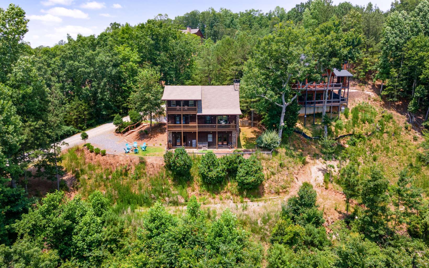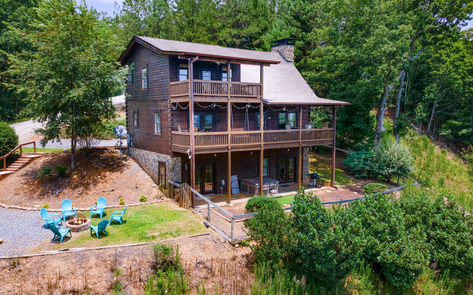 Four Miles of Amazing Views of Carters Lake and Sharp Top Mountain. This traditional Overland Trail real log home boast of views that go on forever. 3 B/3B home with large master on upper level for max view of the lake, a bed and bath on every level, family room with cathedral ceilings and game/bonus room in the basement. Enjoy the wide decks on each level to take in the views and watch the wildlife. New Stainless Steel appliances, New Roof, fenced in back yard for your pups to enjoy. This also has fiber optic for your internet. Very private setting, Gated Community, walking access to Carters Lake. 5 miles away from boat launch at Carters Lake, mountain biking / hiking trails. Everything you need to make this your mountain home.