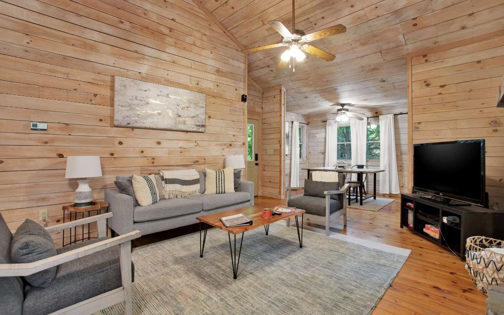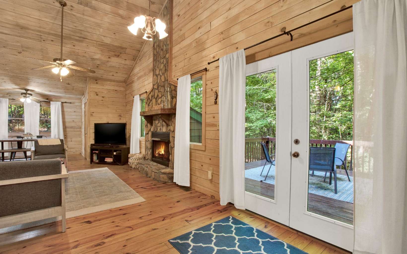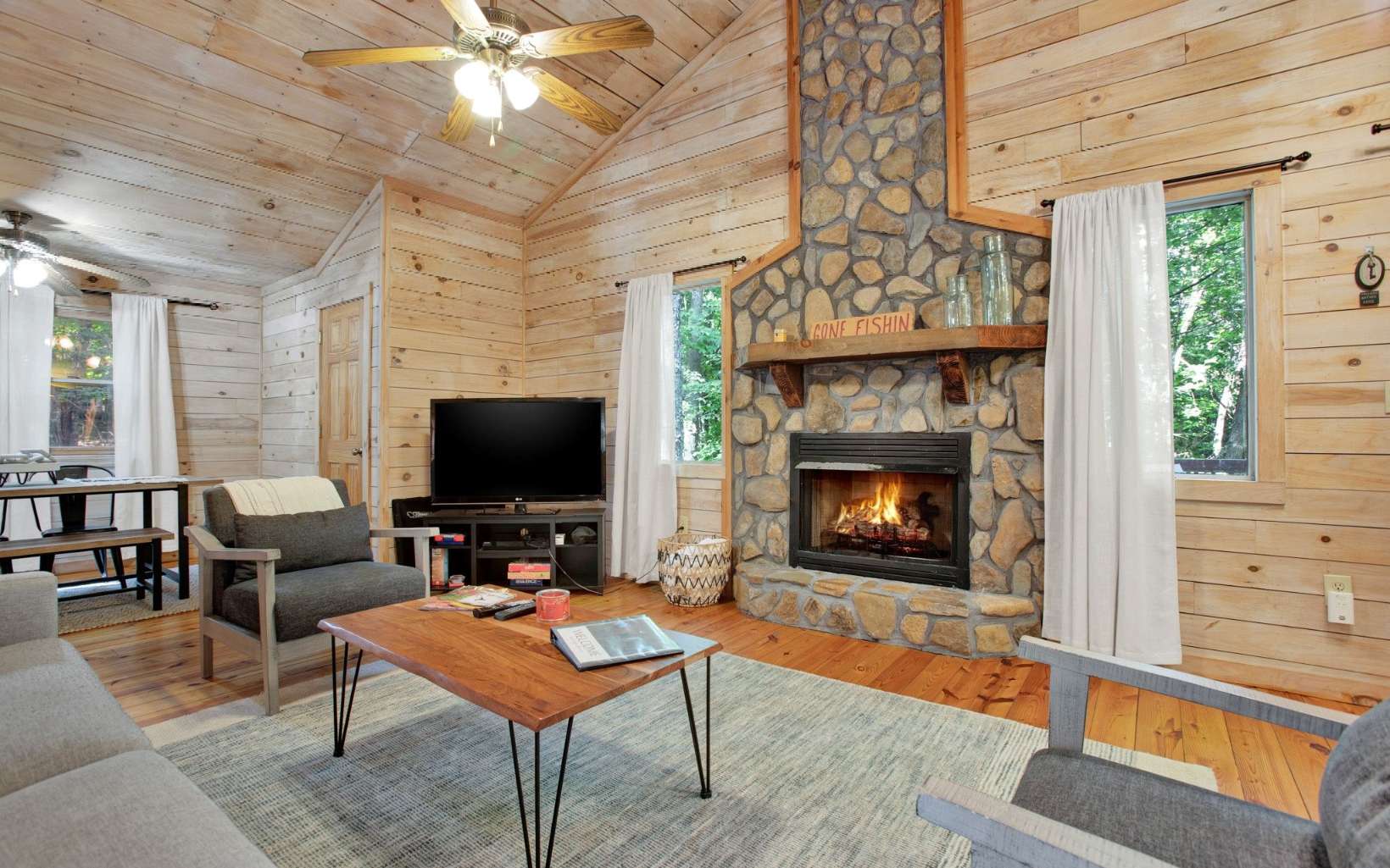 Maybe you’re looking for a second home to retreat to when you need a breath of fresh, mountain air or a primed investment property has been top of mind? You’ve met your match! Seclusion from the hustle and bustle, offering stillness yet convenience, this quaint cabin nestled on over an acre has ample potential. An inviting sitting front porch greets you as you picture quiet mornings and hot coffee. Walk in to immediately notice the recently lightened interior wood, creating a light and airy, cottage-like feeling. Open concept, a stacked stone FP that stretches with the high cathedral ceilings, a separate dining room, and spacious bedrooms. A back deck meant for outdoor entertainment - grill out, play cards, or enjoy the (included) hot tub. Close to Fightingtown Creek, Toccoa River, great trout streams, and more outdoor adventures!