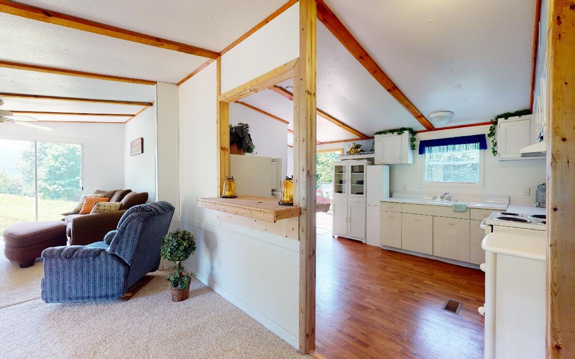 2 BEDROOM/ 2 BATHROOM HOME IN THE NORTH CAROLINA MOUNTAINS!! Located on a gentle to rolling .77 of an acre lot with a branch at the back of the lot, this manufactured home offers nice mountain views, 2 bedrooms, 2 bathrooms, living room with a wood burning fireplace, dining area, spacious kitchen, covered front porch, an open air back deck and an out building.