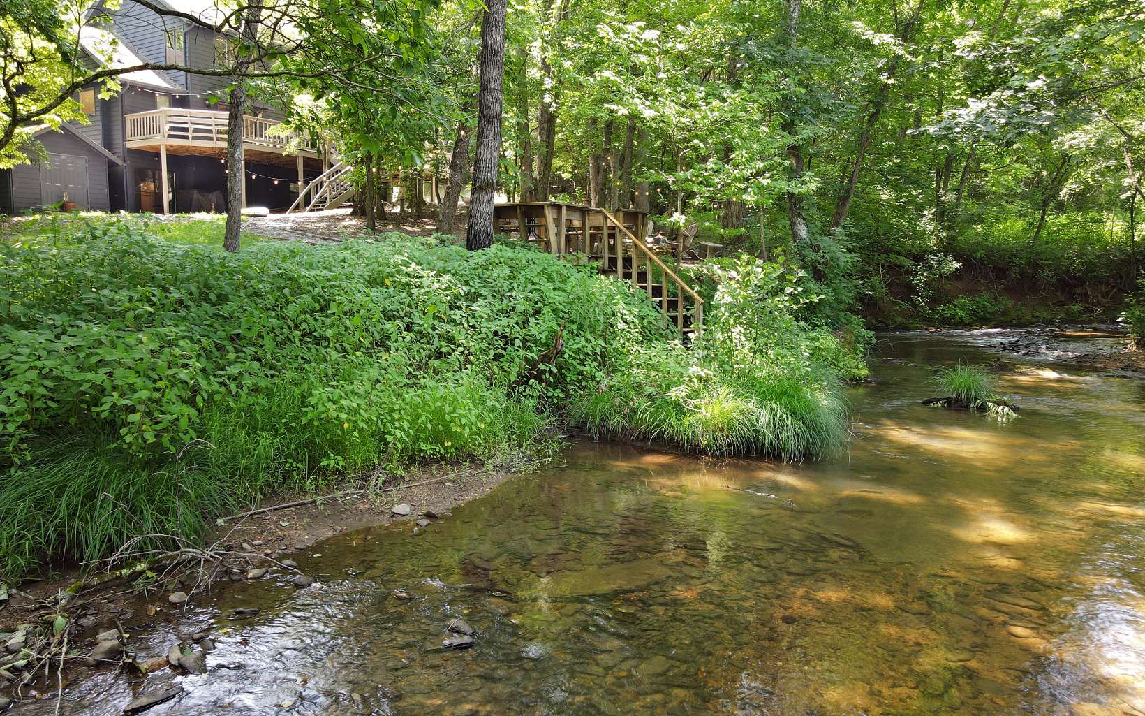 Motivated Seller!! Find your peace by the creek!! This beautiful home has over 250+ ft of creek frontage in your back yard featuring a deck overlooking the water, stone fire pit & beautiful hardwoods. Spacious 2 story home with master on the main floor, great room with vaulted ceilings & stone fireplace. Upstairs has 2 bedrooms & one full bath with a sleeping or sitting loft. The walkout basement is fully finished with a full bath, large sleeping room & game room for all the family & guest. Sunrise Grocery is within walking distance, less than 4 mins. to Vogel State Park, 10 mins to Blairsville, which has all the restaurants, grocery stores, you need.Close to Lake Nottely & Blue Ridge. Discover the joys of living on the creek!